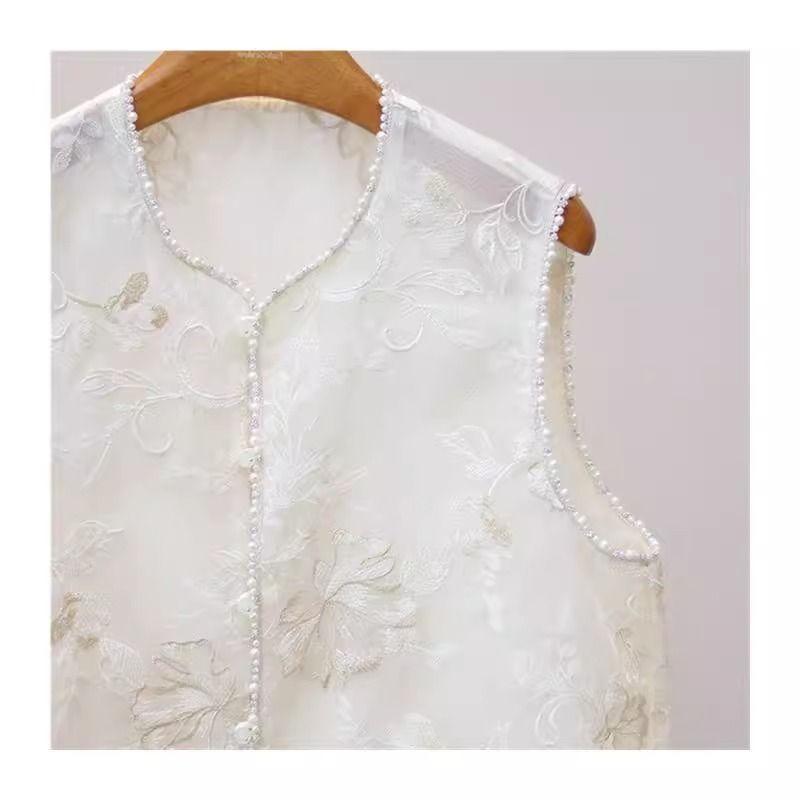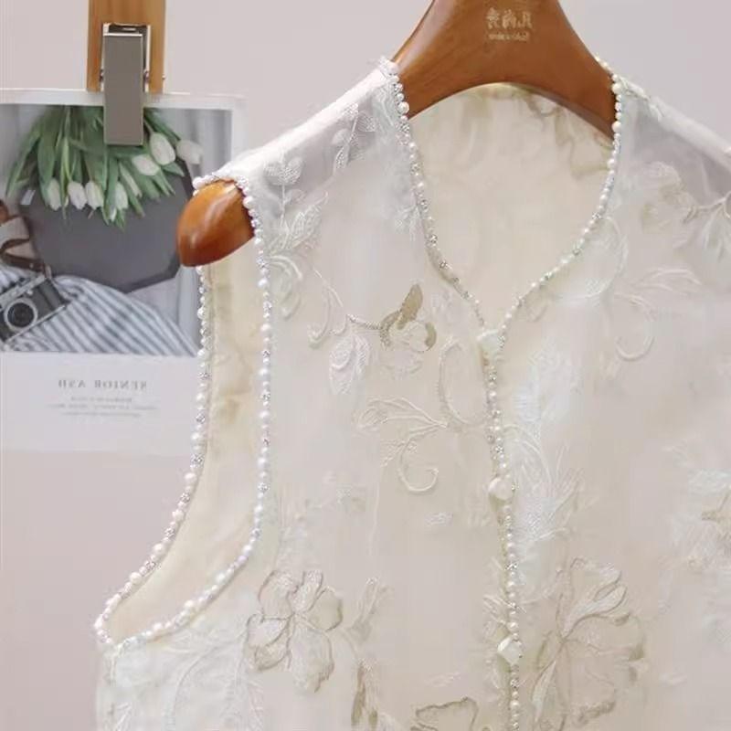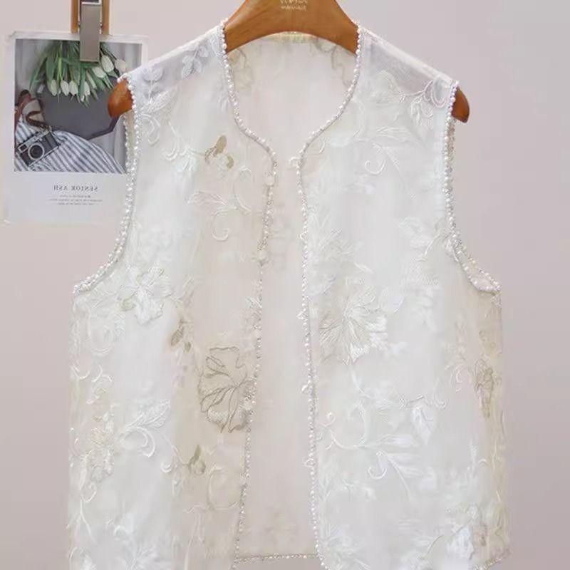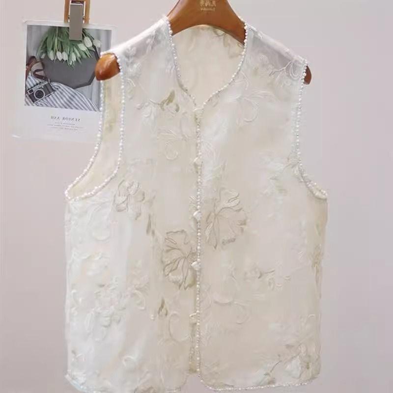 Вышитый тонкий жилет жилет женский лето 2025 лето темперамент топ без рукавов