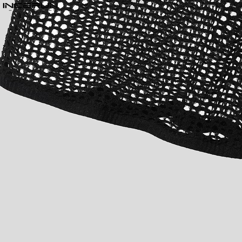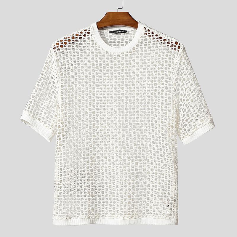 INCERUN Мужские футболки с коротким рукавом, полые, прозрачные, пляжные, повседневные