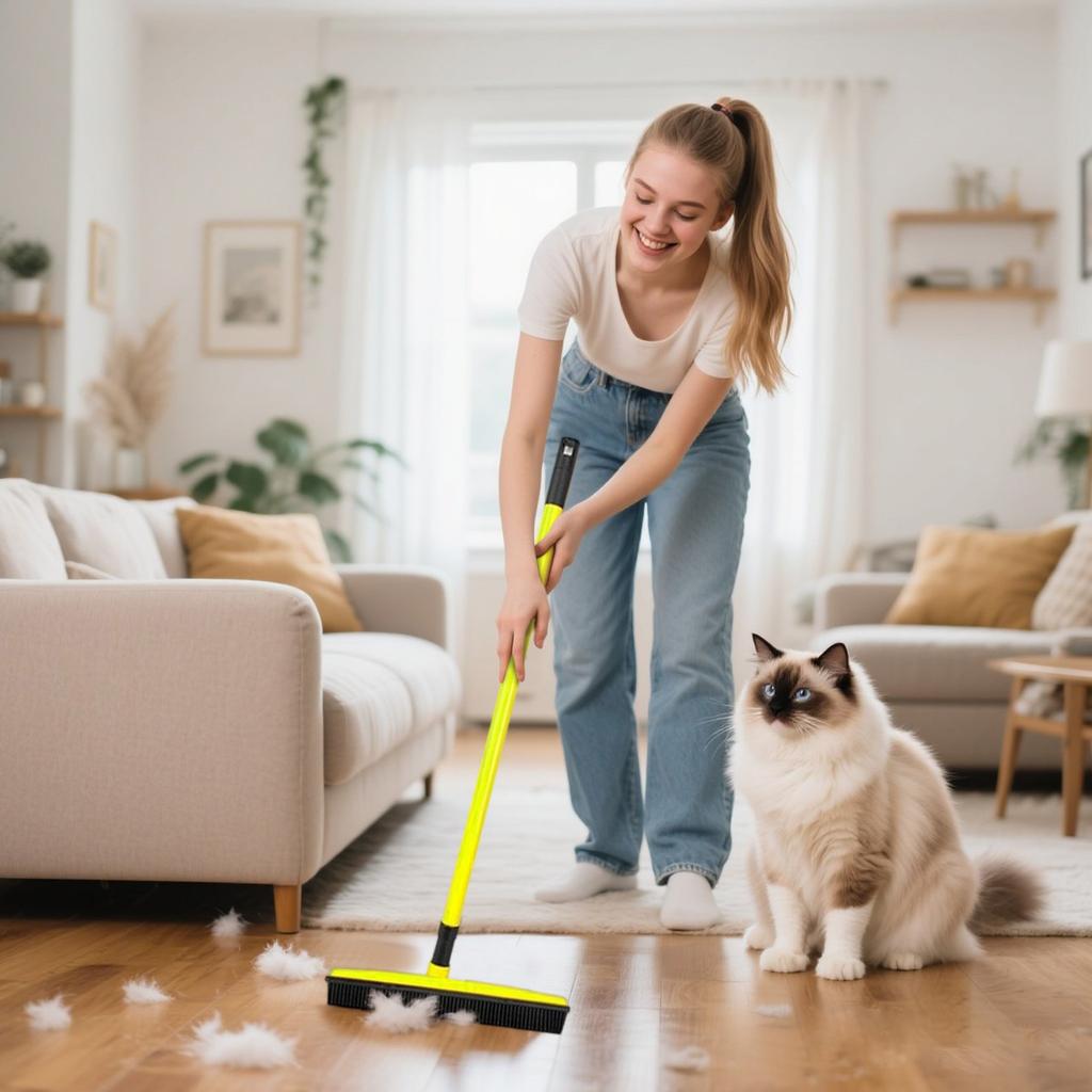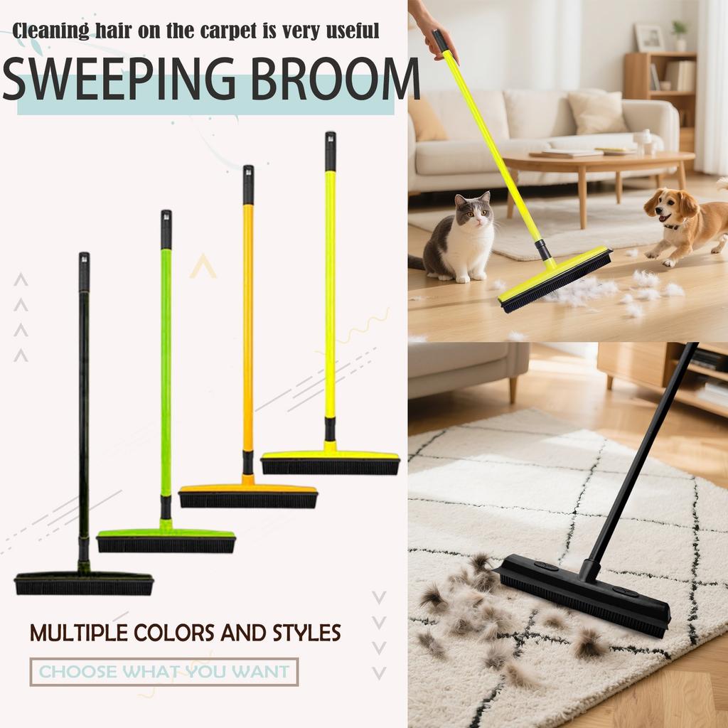 Резиновая щетка для шерсти домашних животных со скребком, с телескопической ручкой 48 дюймов для ковров, плитки и твердых пород дерева