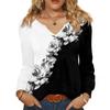 Женская модная повседневная блузка с V-образным вырезом на пуговицах, с длинным рукавом, пуловер, футболка, топ