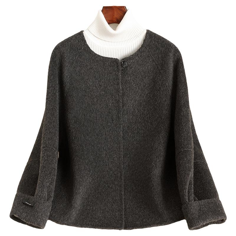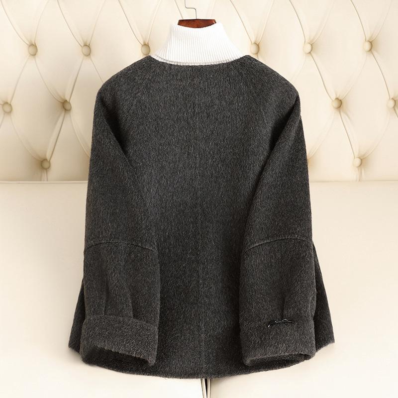 Осень и зима новая двусторонняя шерстяная куртка женская короткая высококачественная серая шерстяная куртка маленький человек