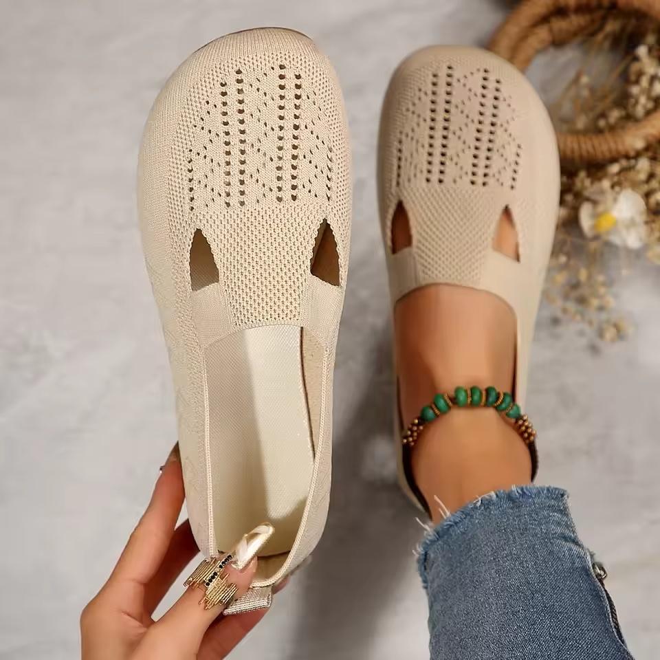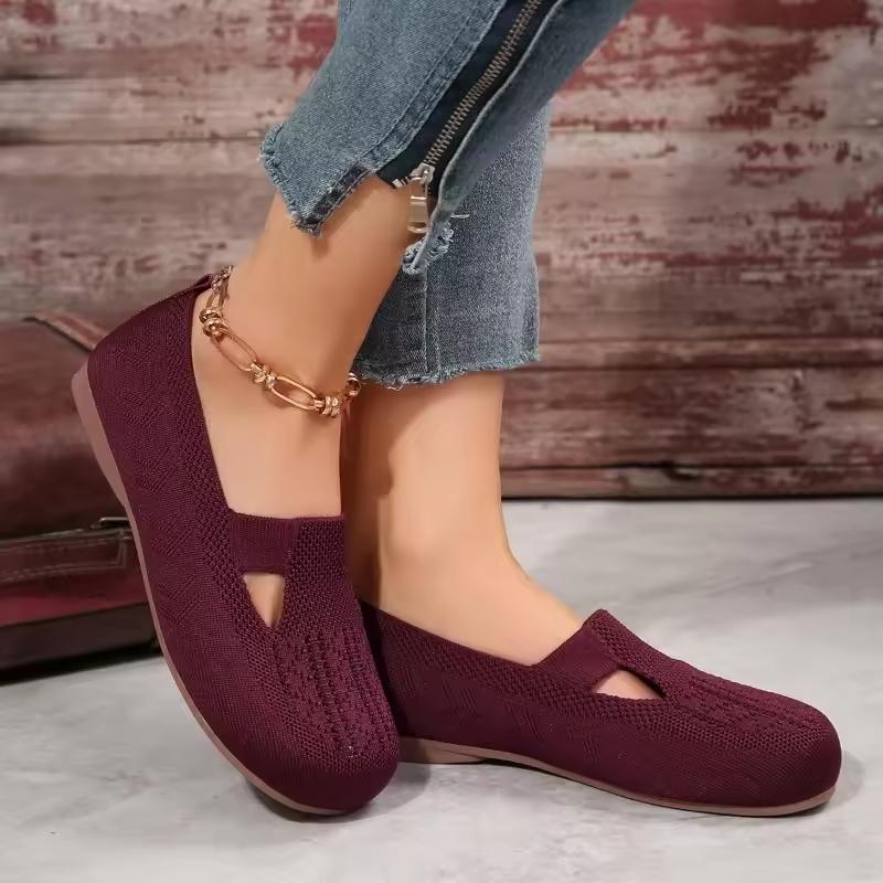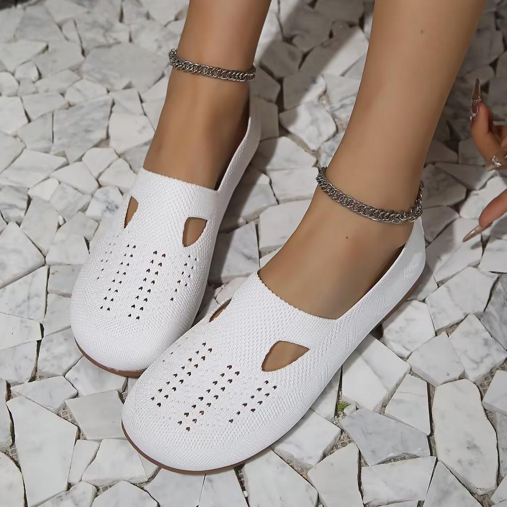 Лоферы Осенняя повседневная обувь Женская плоская подошва Квадратный носок Кроссовки с вырезом Босоножки Мокасины Женские трикотажные балетки