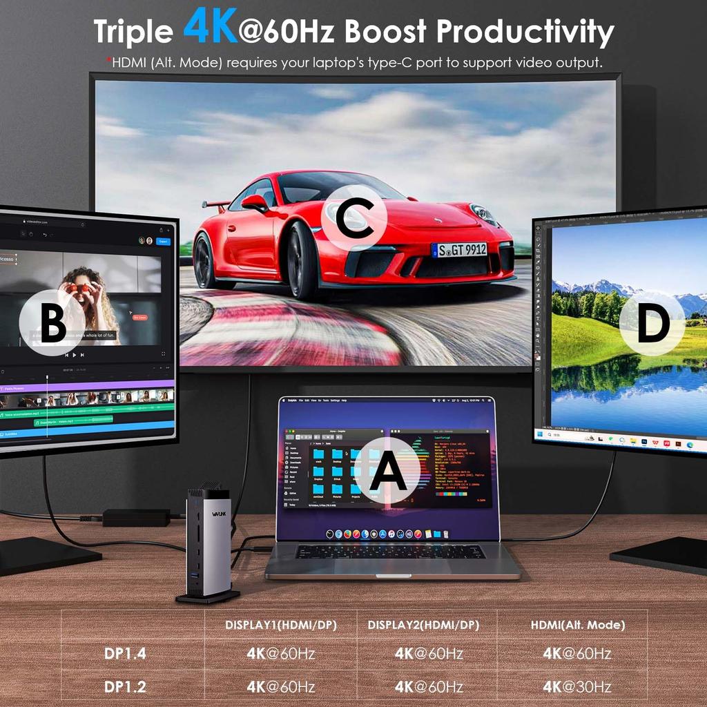 Универсальная док-станция WAVLINK DisplayLink Triple 4K USB C для Mac и Windows с 3 2 5 USB, не поддерживает зарядку ноутбука, (M1/M2/M3 и Совместимый),