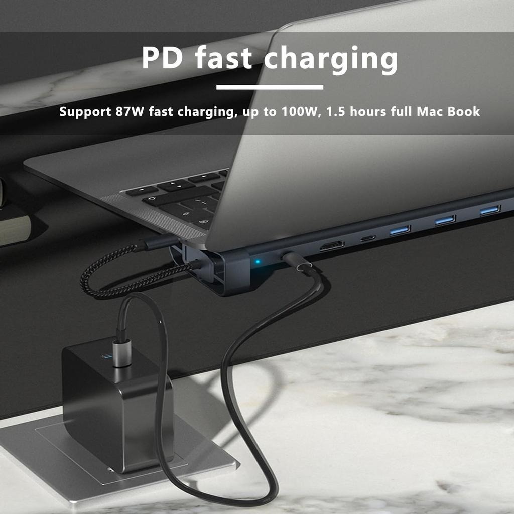 ✅【Сверхбыстрая зарядка и стабильный гигабитный интернет】: Порт PD мощностью 100 Вт обеспечивает скорость непрерывной зарядки до 92 Вт для устройств USB-C (потребляемая мощность устройства составляет 8 Вт, функция передачи данных/вывода видео отсутствует). Мгновенно подключайтесь к Интернету и наслаждайтесь высокой и стабильной скоростью соединения.