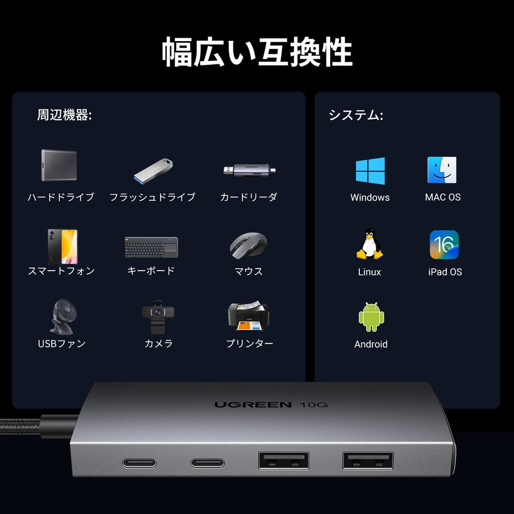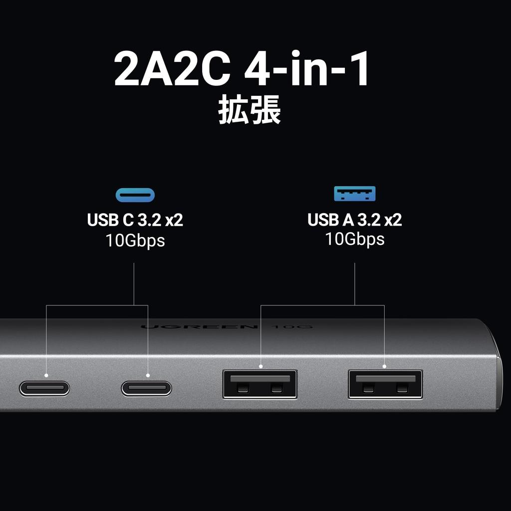UGREEN USB C Хаб 10 Гбит/с 4-портовое расширение Адаптер-конвертер USB C в USB 2 и 2 Многопортовый хаб для MacBook iPad Идеально для работы из дома и