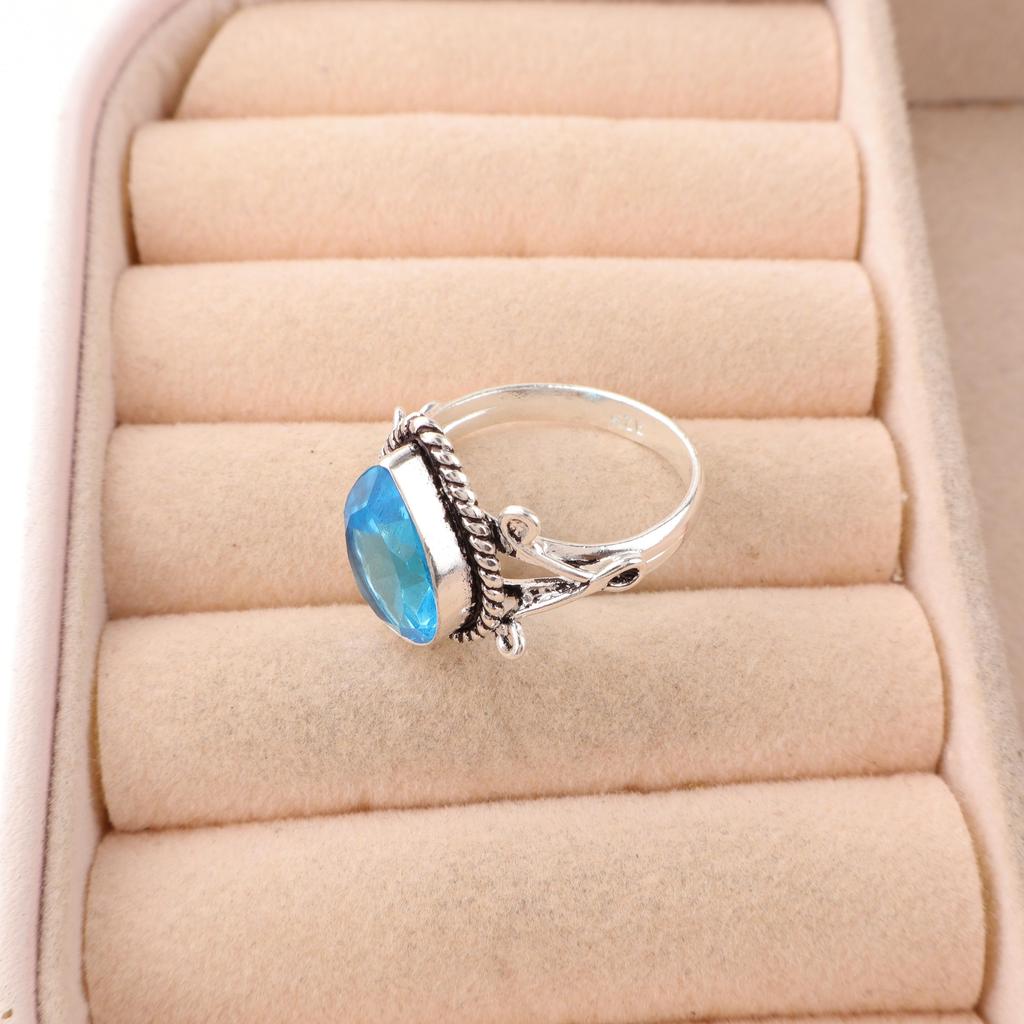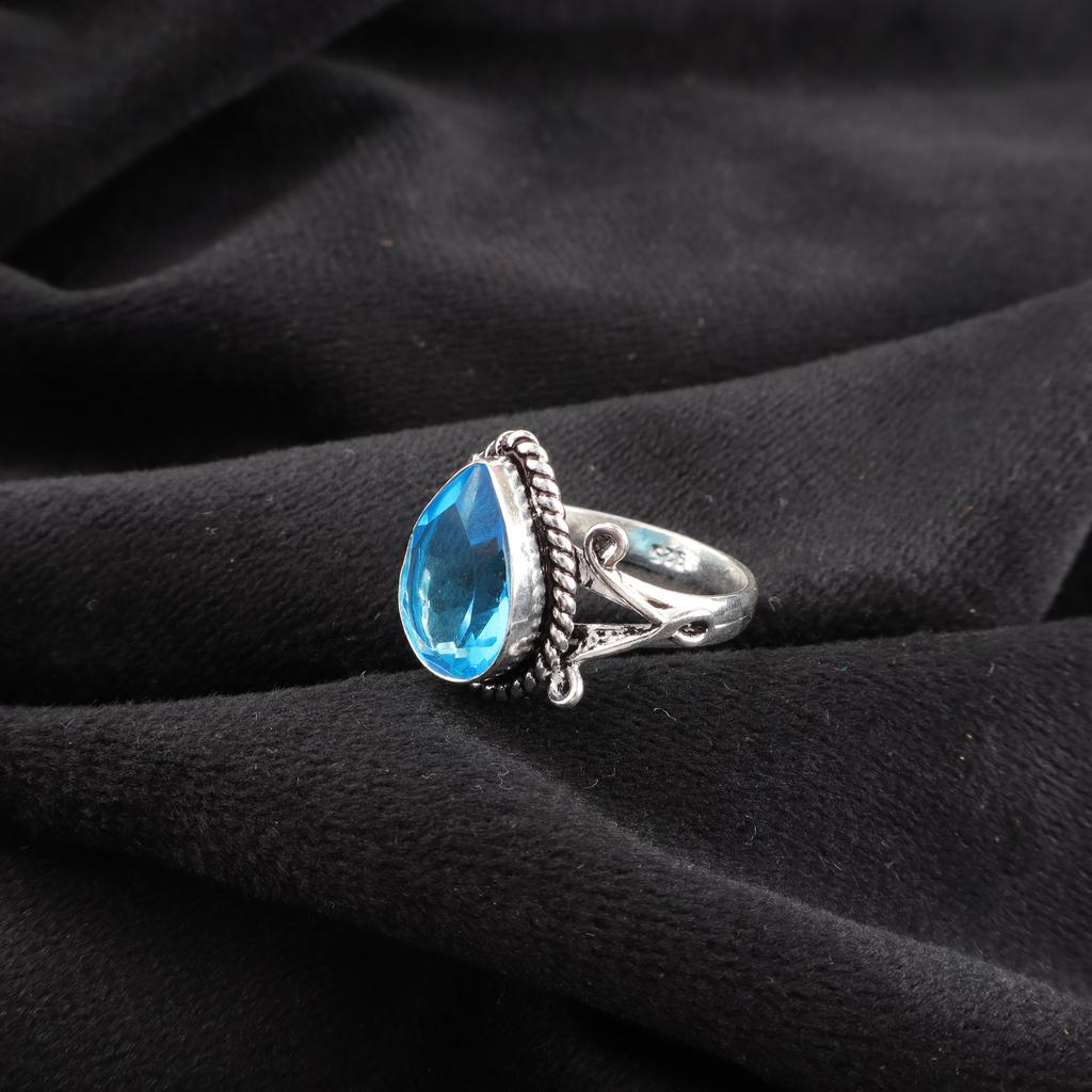 Ювелирное изделие Кольцо с драгоценным камнем Швейцарский голубой топаз, Кольцо из стерлингового серебра 925 пробы, Ювелирное изделие ручной работы, Серебряное украшение для подарка