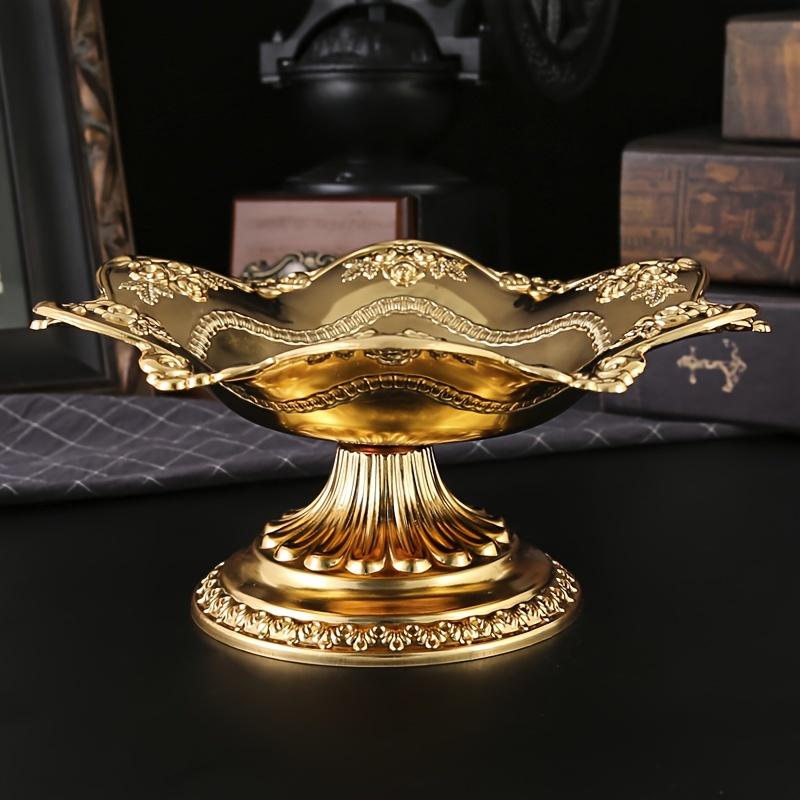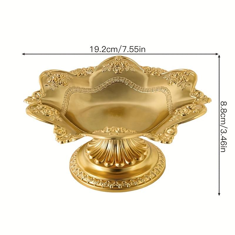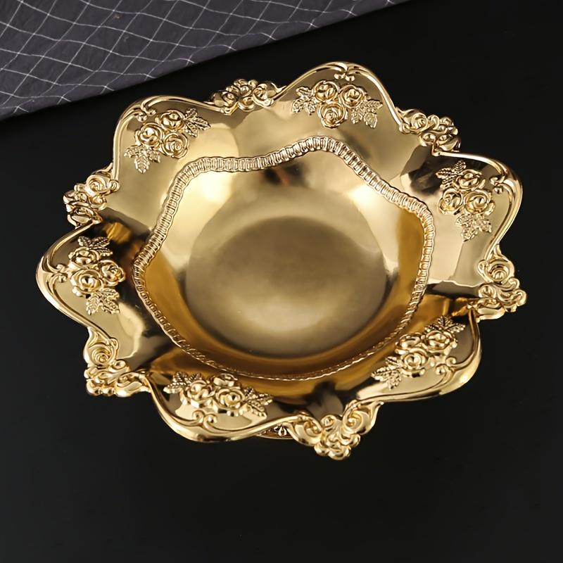 1 шт. элегантный золотистый металлический поднос для фруктов из дерева буррон с высокими ножками, для дома, храма или подношений. Прочная конструкция из литого чугуна, для обеда,