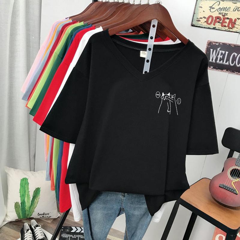 Футболка с коротким рукавом, Свободного кроя, Приталенный топ с V-образным вырезом с принтом для женщин