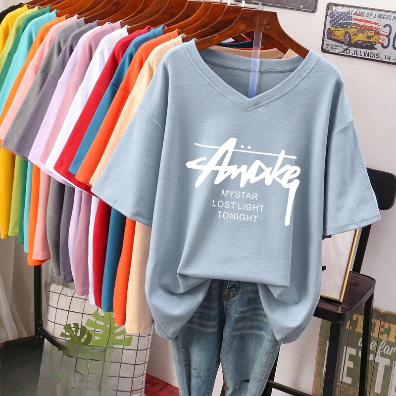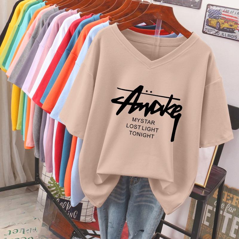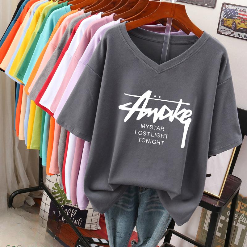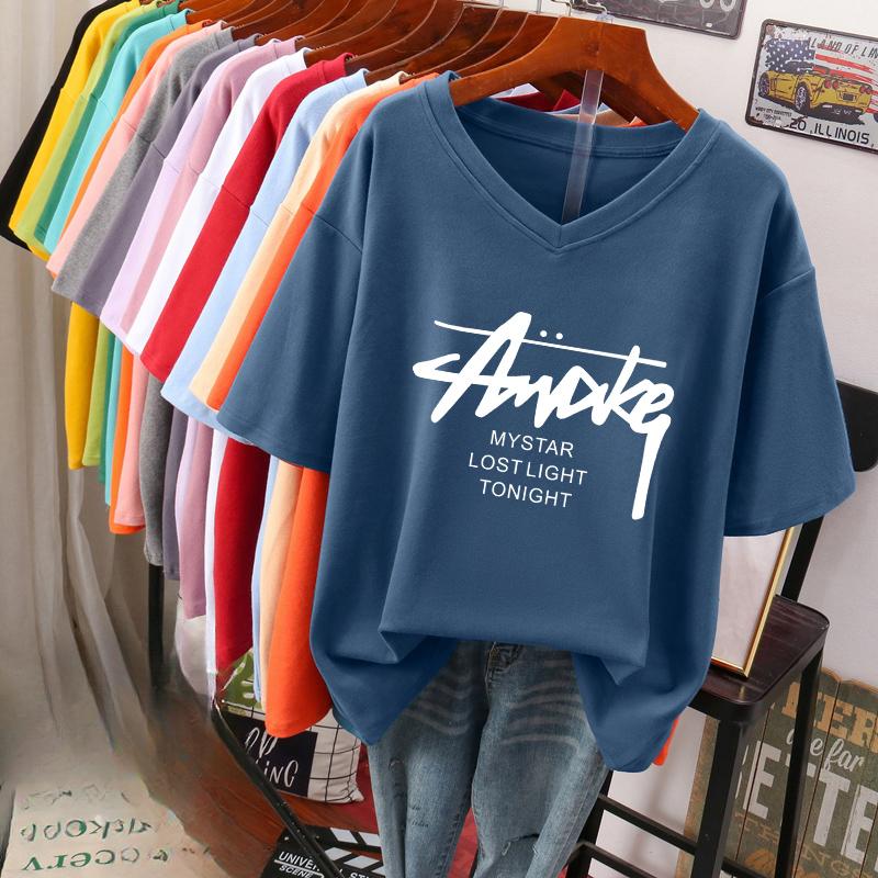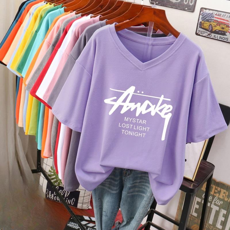 Футболка с коротким рукавом, Свободного кроя, Приталенный топ с V-образным вырезом с принтом для женщин