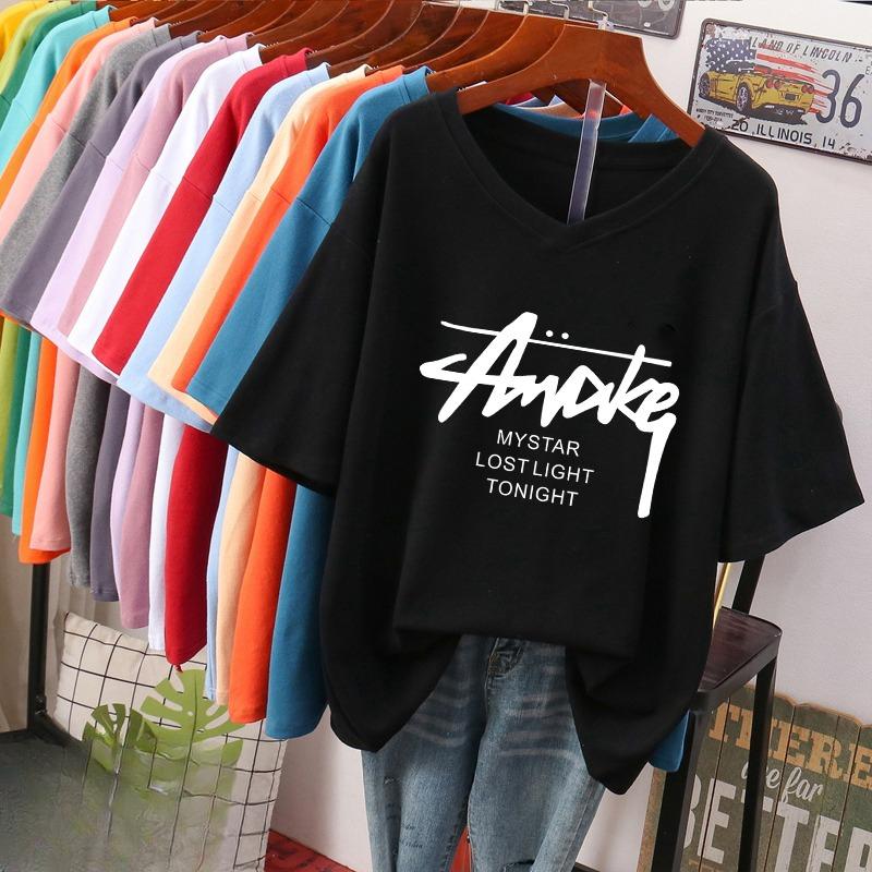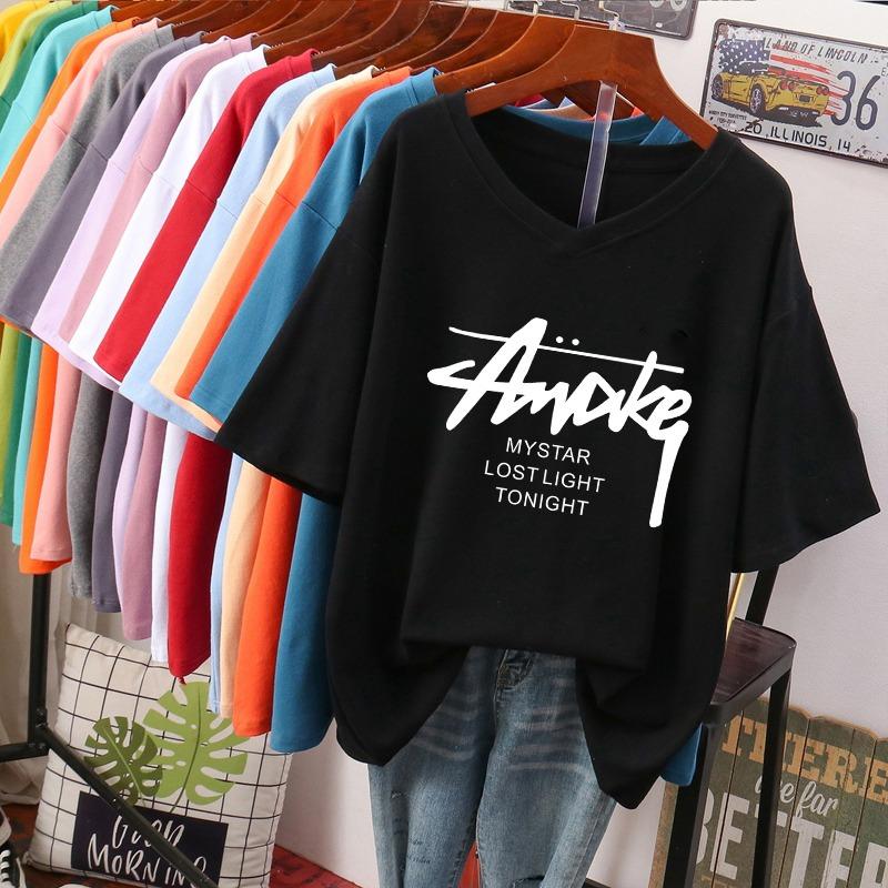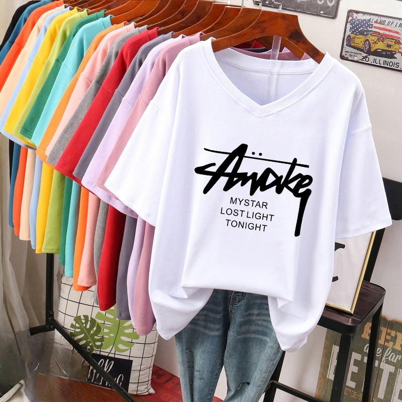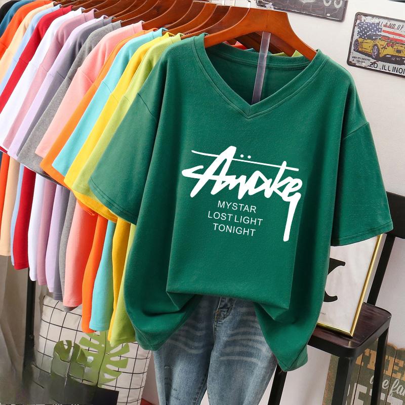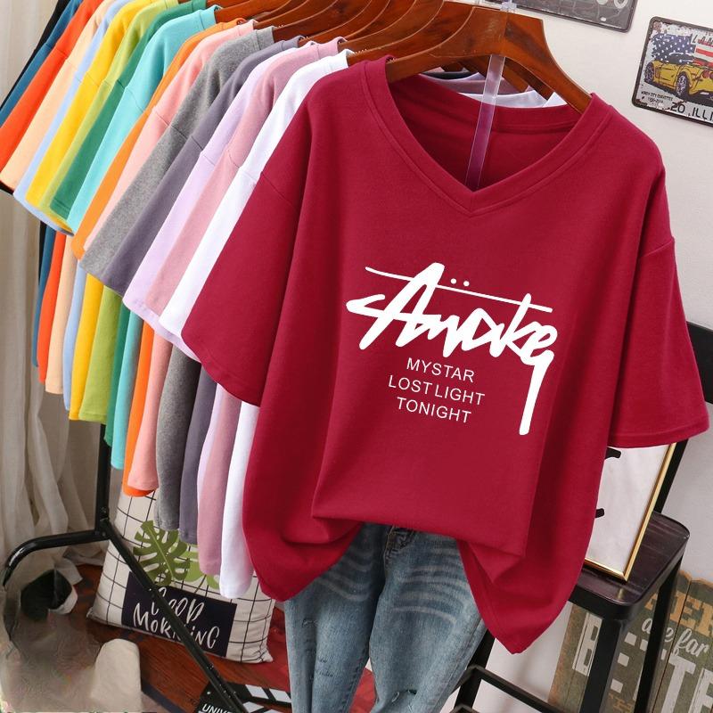Футболка с коротким рукавом, Свободного кроя, Приталенный топ с V-образным вырезом с принтом для женщин