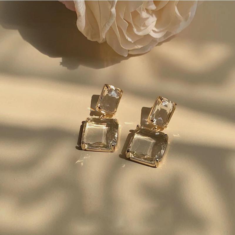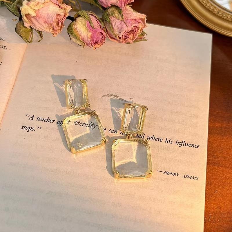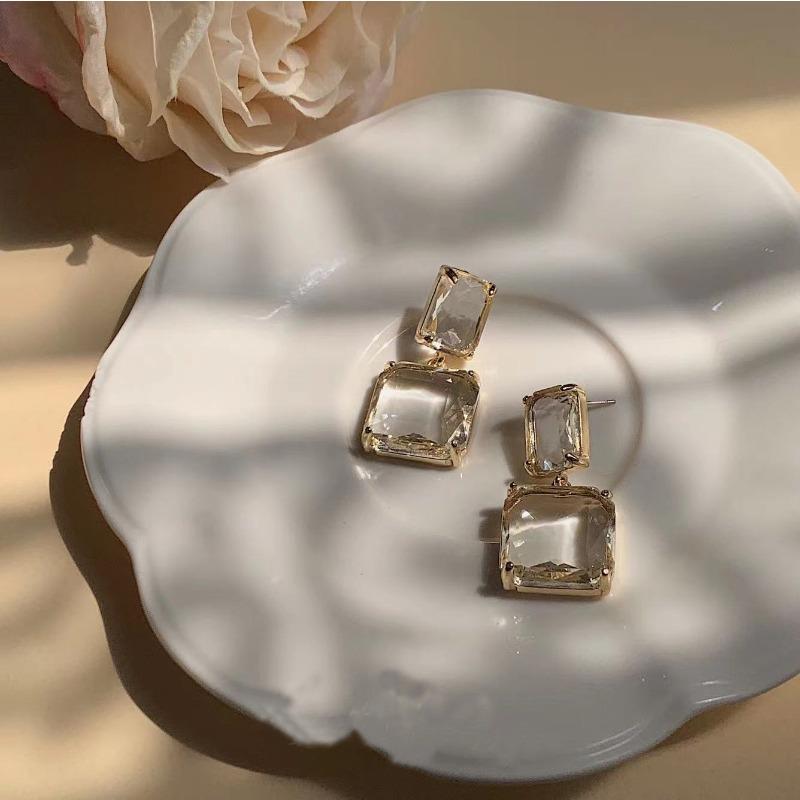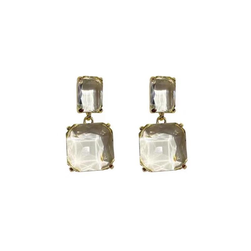 Винтажные серьги-гвоздики в стиле Гонконга, с прозрачными драгоценными камнями и геометрическим дизайном