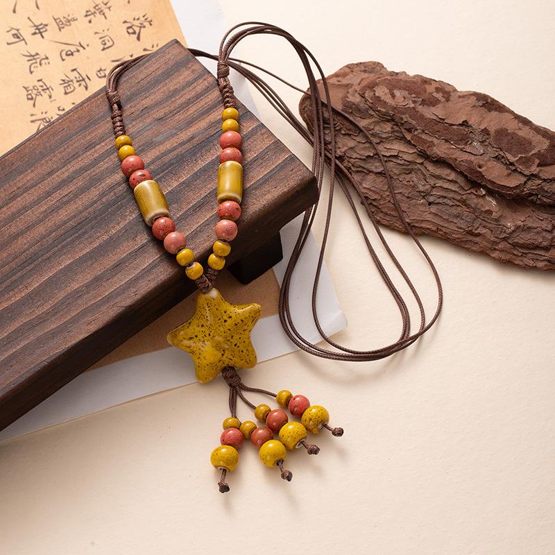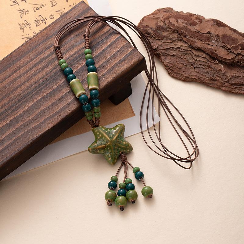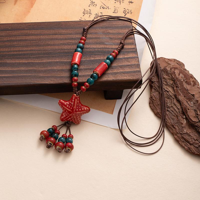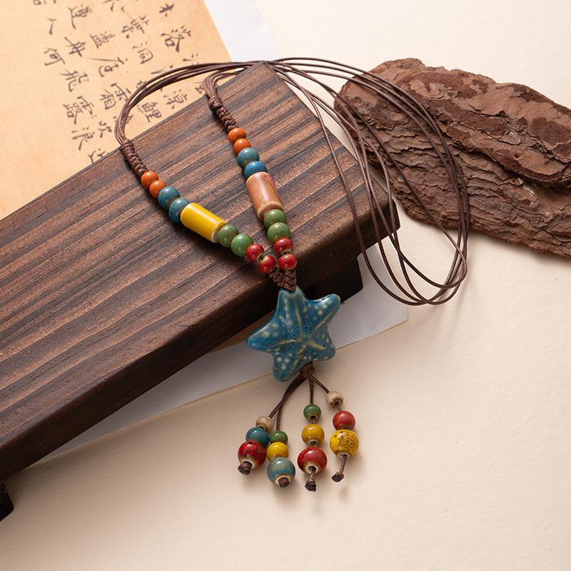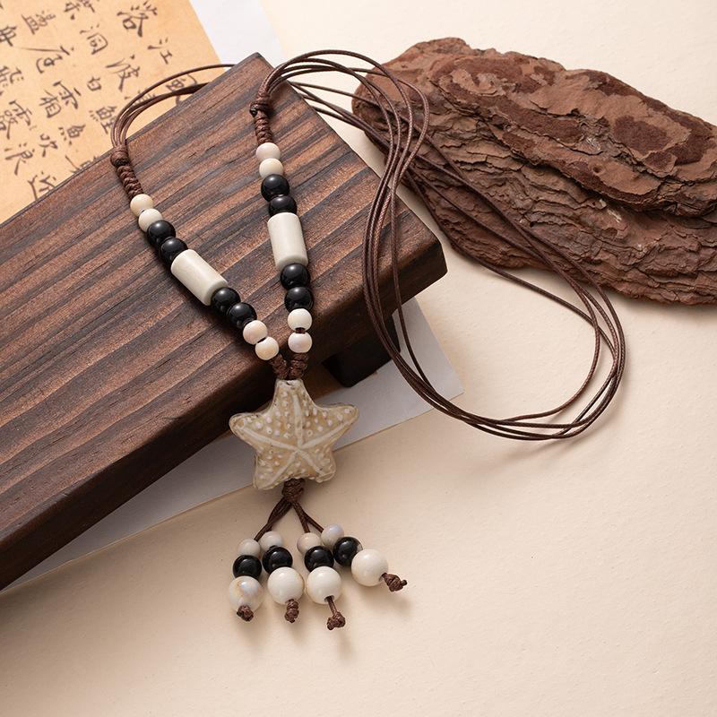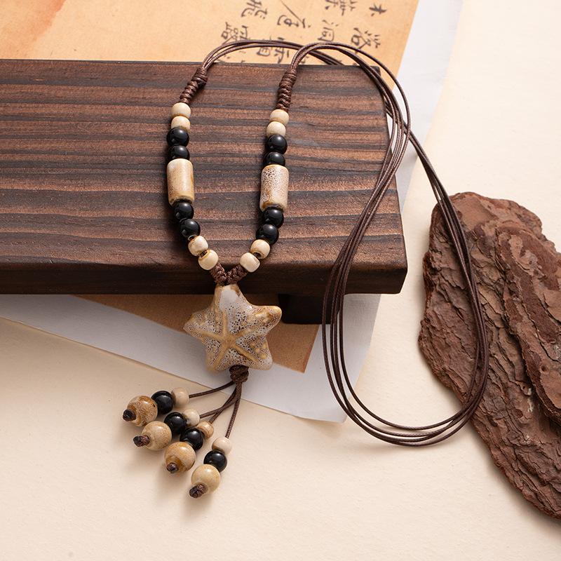Летнее керамическое разноцветное ожерелье с бусинами и морской звездой, длинное плетеное веревочное ожерелье, аксессуар