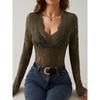 Сексуальные однослойные базовые топы с кружевной отделкой для весны и осени, женские футболки