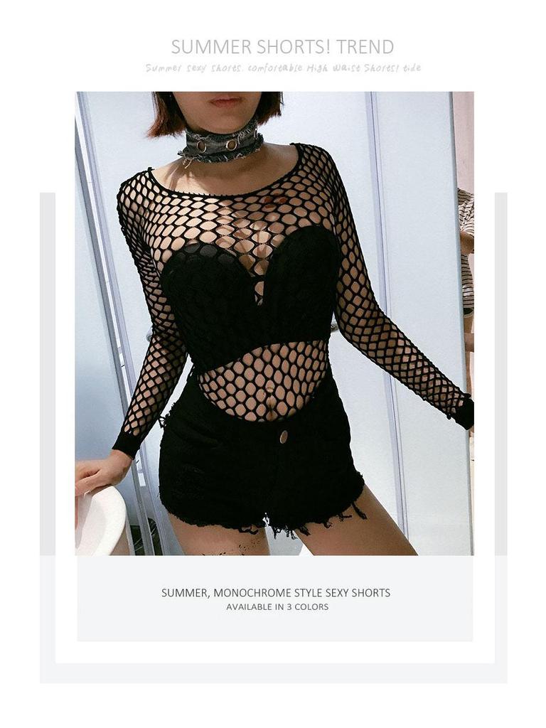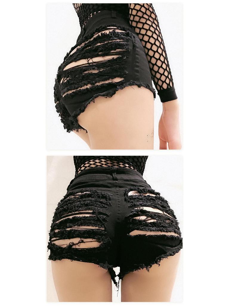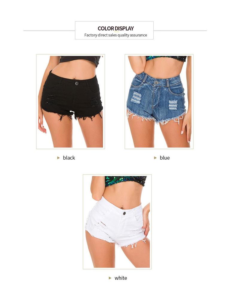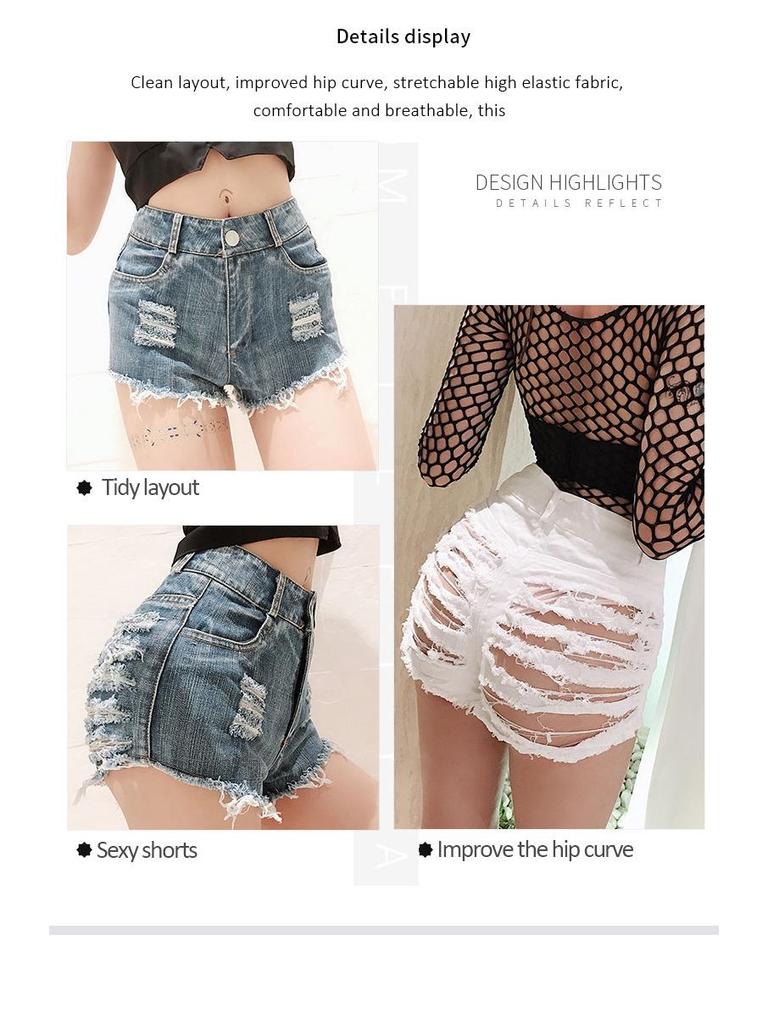 Женские джинсовые шорты с завышенной талией и рваным декором - Сексуальная летняя клубная мода