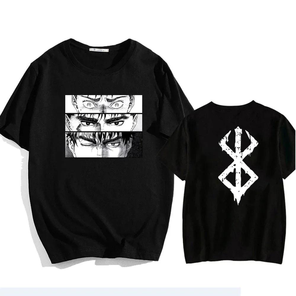 Футболка Berserk Guts Футболка Мужская крутая манга Японское аниме Женская хлопковая футболка Harajuku Manga Хип-хоп Футболка большого размера Одежда Топы