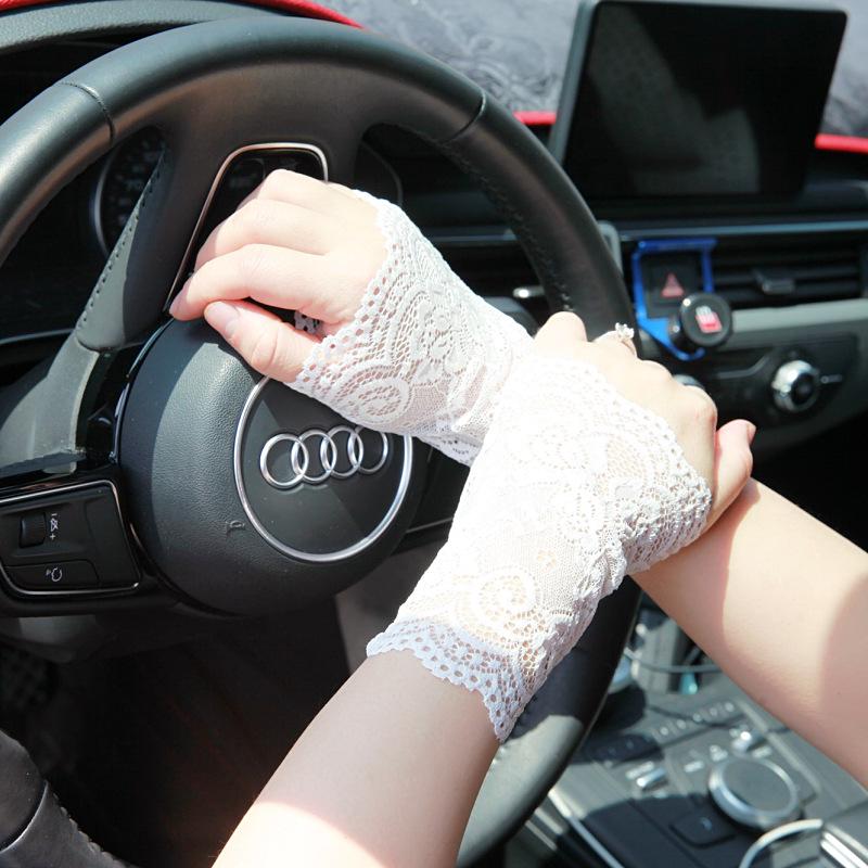 Летние короткие перчатки из эластичного кружева, защита от солнца, противоскользящие, тонкие женские перчатки для вождения.
