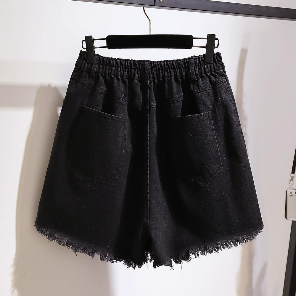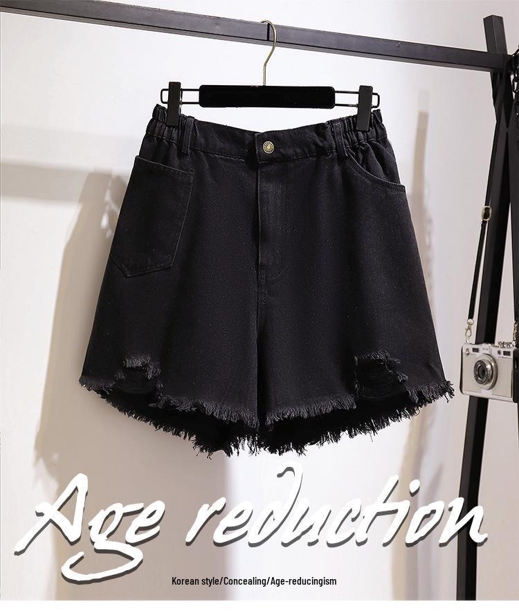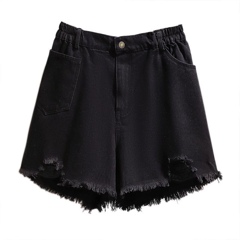 Женские джинсовые шорты больших размеров с высокой талией и рваным декором - Летние свободные с широкими штанинами