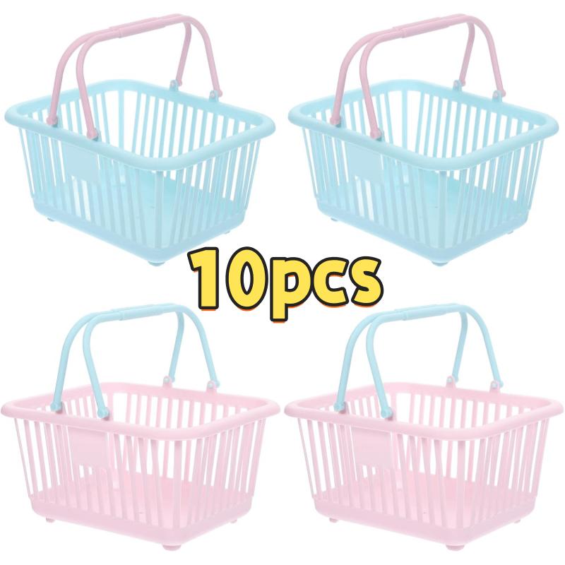 10 шт. Мини-пластиковые корзины для хранения цветов макарон с ручками, Универсальный органайзер для дома, вечеринок, подарков и тележек для покупок, Полочная корзина