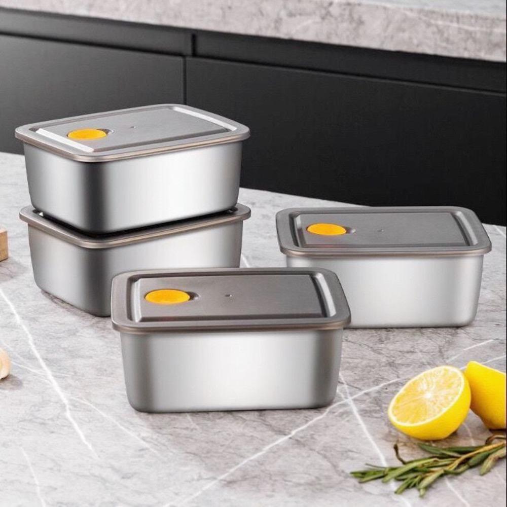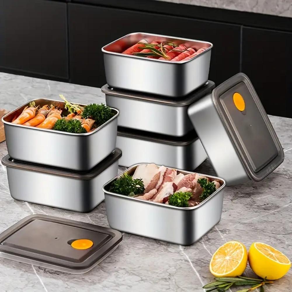 Прямоугольный герметичный контейнер Портативный ланч-бокс Контейнер для пикника Контейнер для хранения свежих продуктов из нержавеющей стали Хранение фруктов