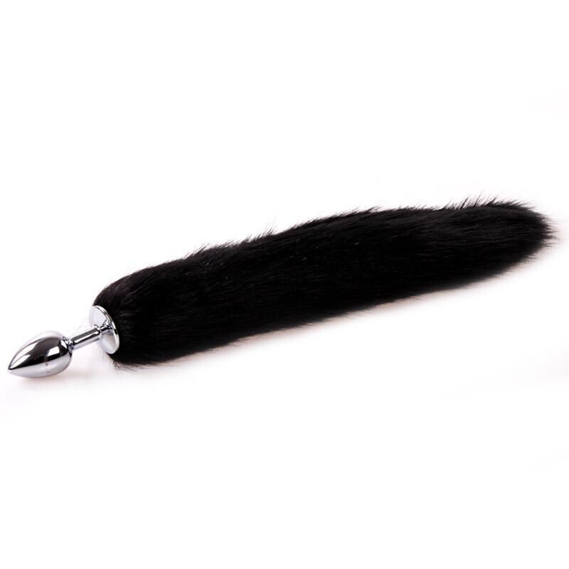 Металлическая анальная пробка с искусственным лисьим хвостом и шариком для вытягивания с волосами