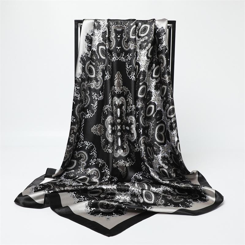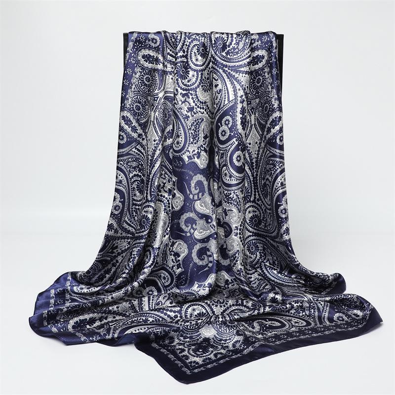 Двухцветный шелковый платок пэчворк с узором пейсли - Европейский и американский ретро, Большой квадрат 90 см, Тонкий платок/шаль