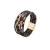 Женский кожаный браслет с магнитной застежкой с леопардовым принтом и медными бусинами-трубочками