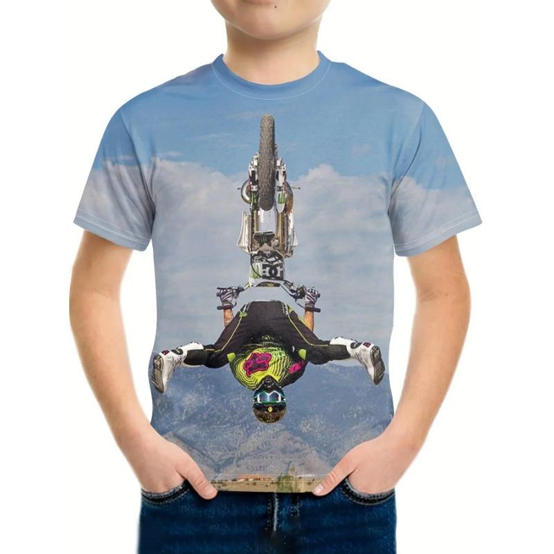 Мотоциклетная футболка для мальчика Топы 8-10 летняя одежда для мальчика Летняя одежда с коротким рукавом Одежда для мальчиков Наряды для девочек Детская футболка