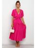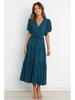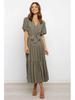 Богемное платье с V-образным вырезом, принтом, короткими рукавами и приталенным силуэтом, длинное, в наличии