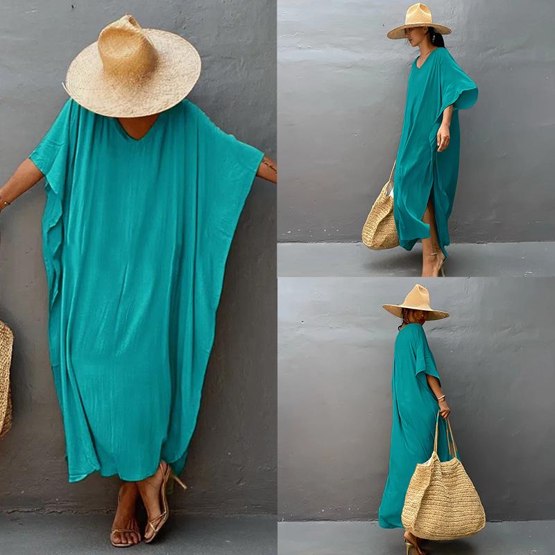 Европейский и американский хлопковый длинный халат, пляжная накидка: Однотонное купальное платье с защитой от солнца