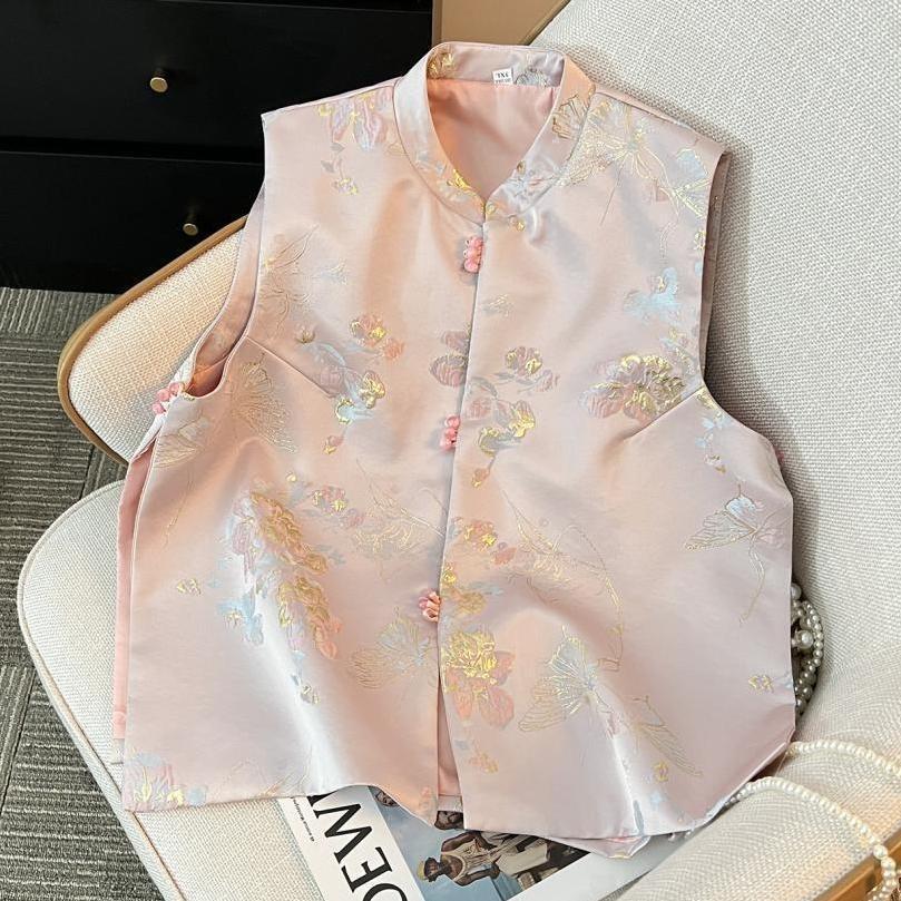 Жилет жаккардовый со стойкой воротником женский новый вышитый годовой тренд