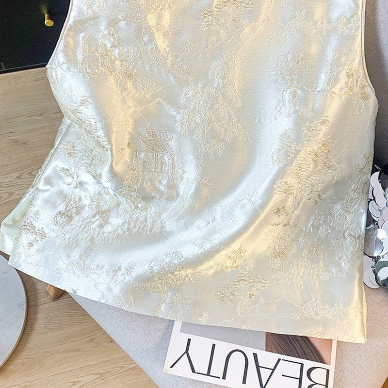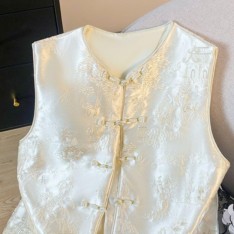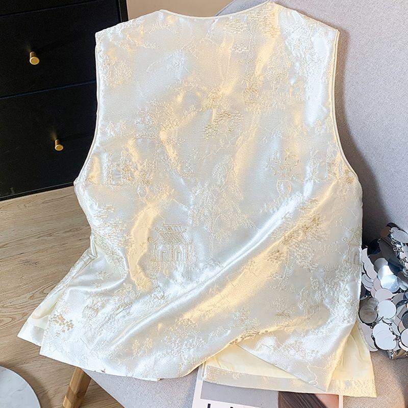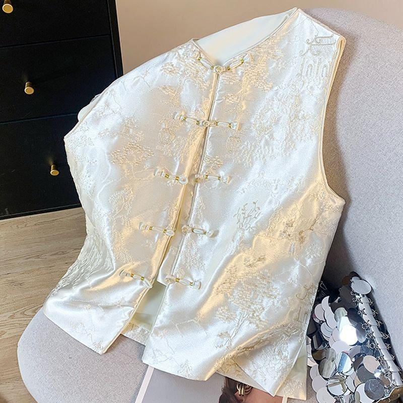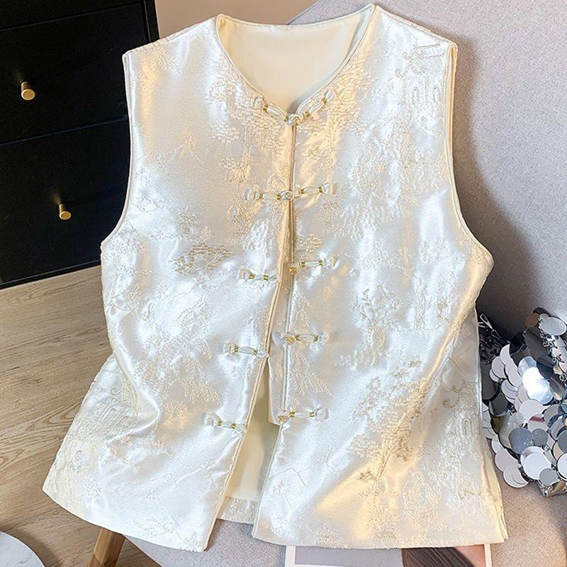 Жилет жилет женский весна и лето 2025 новый антикварный топ без рукавов с дисковой застежкой жилет