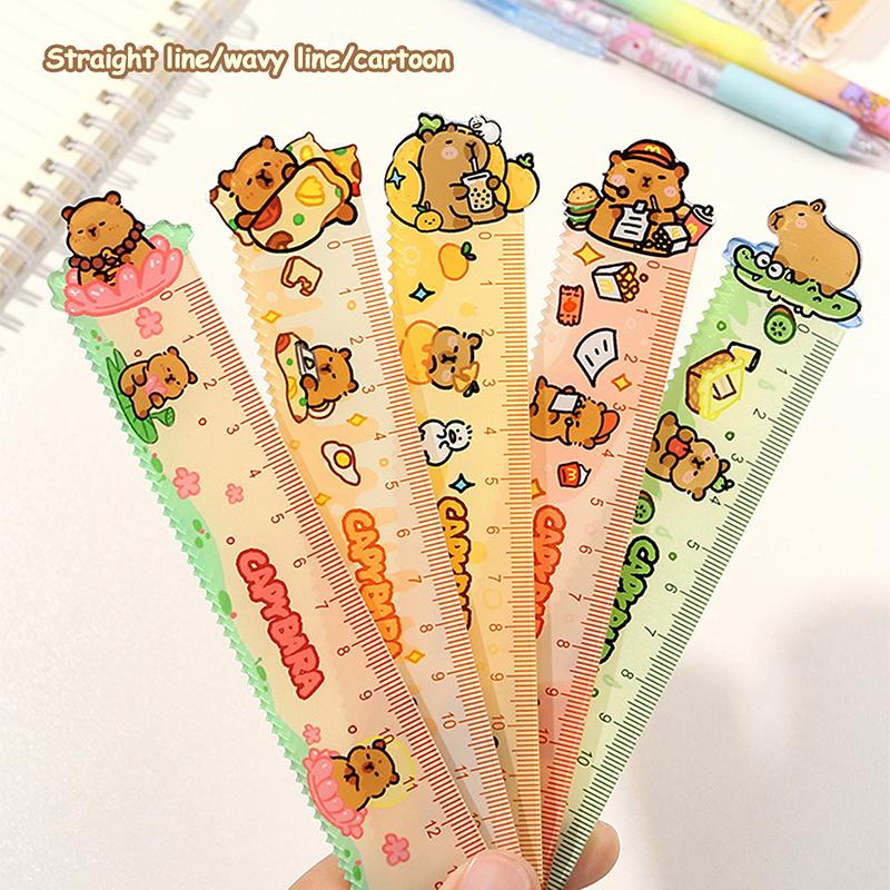 Творческая 15 см линейка Capybara школьные канцелярские принадлежности волнистые линии инструменты для рисования акриловая милая мультяшная прямая линейка канцелярские принадлежности
