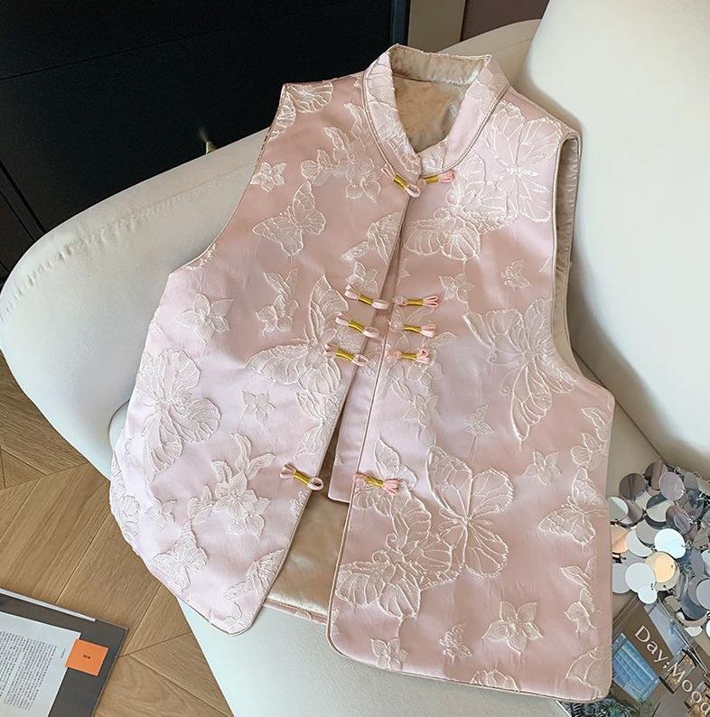 Синий жилет с вышивкой бабочки, темпераментная застежка-диск, без рукавов, универсальный, европейский топ для ранней весны