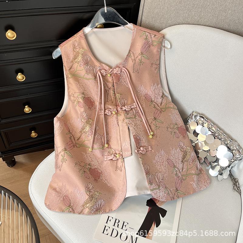 2025 Жаккардовый атласный жилет женский весенний высококлассный розовый шикарный жилет — купить товар онлайн с бесплатной доставкой по всему миру!