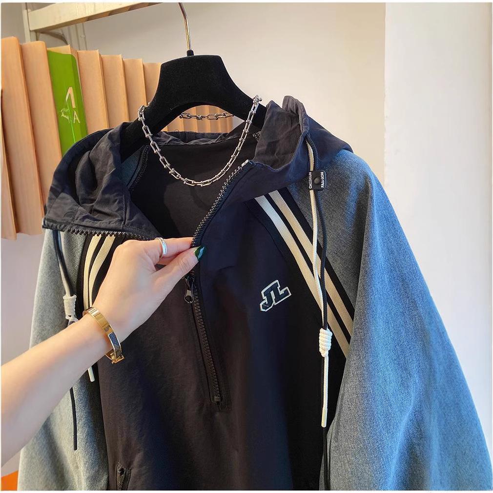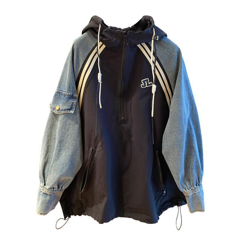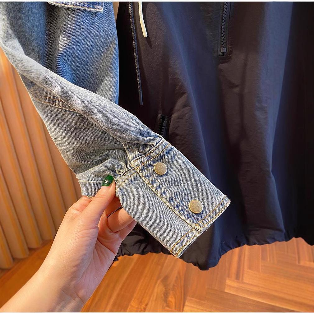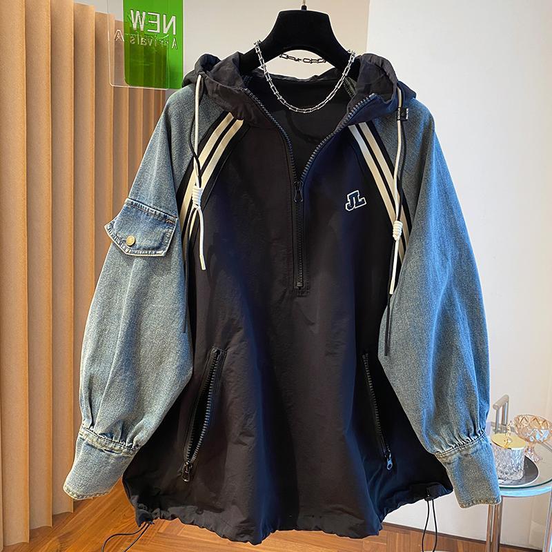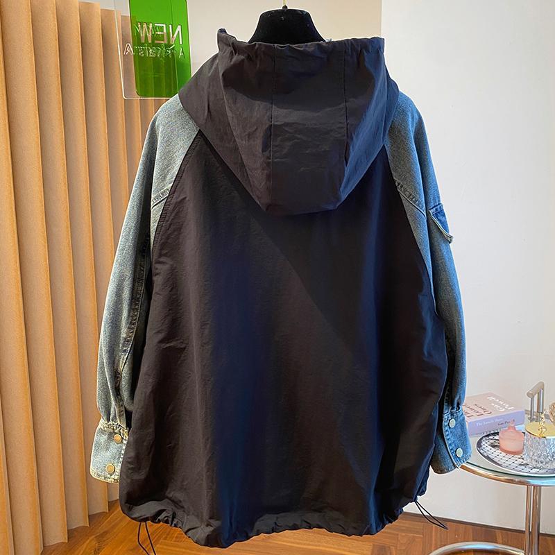 Толстовки больших размеров для женщин, лоскутное деним, уличная одежда, топы Y2k, Ropa Mujer, с капюшоном, контрастные цвета, винтажные толстовки