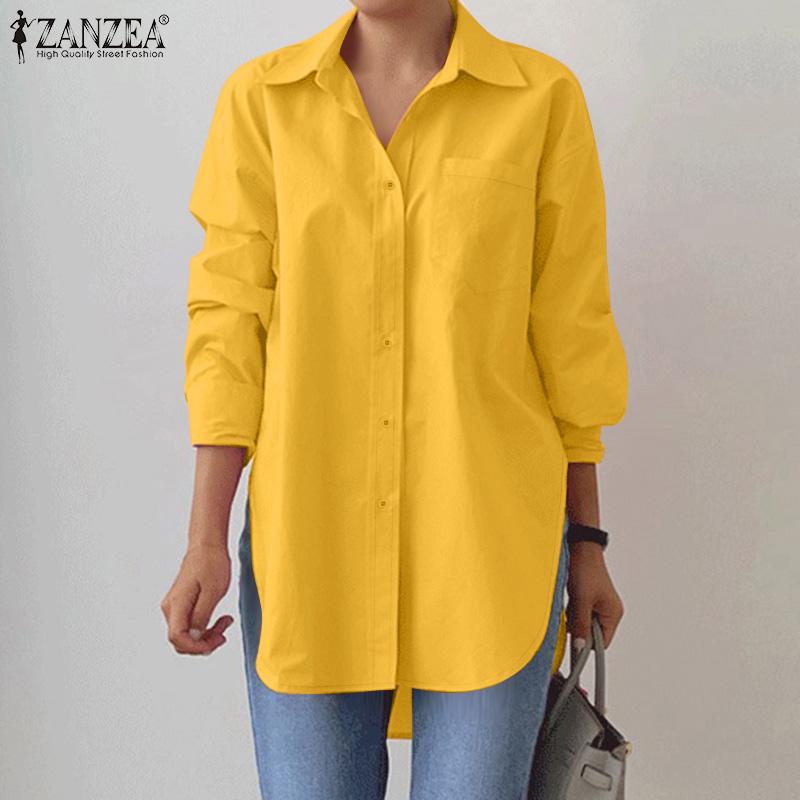 ZANZEA Женская блузка с отложным воротником, свободного кроя, повседневная, с длинным рукавом на пуговицах