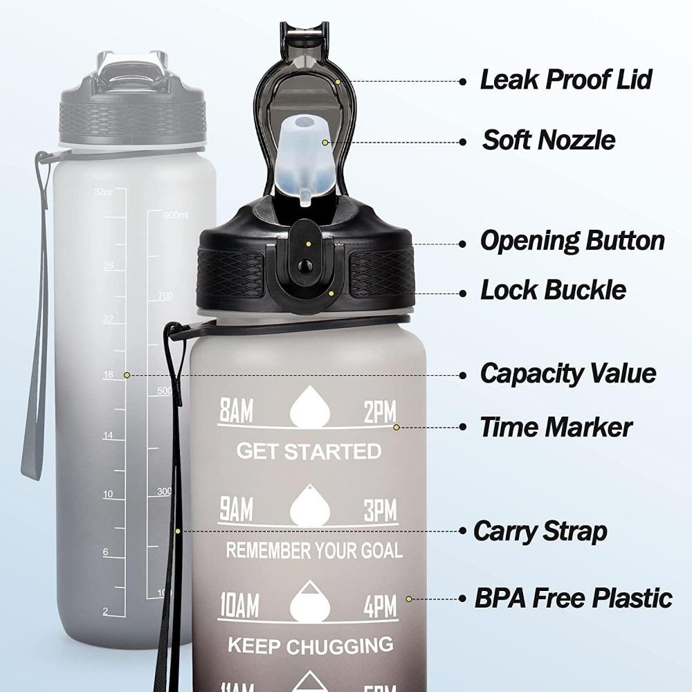 Бутылки для воды 1000 мл, герметичные, с отметками времени для питья и соломинкой, мотивационная бутылка для питья, спортивная бутылка для воды для фитнеса, тренажерного зала, улицы