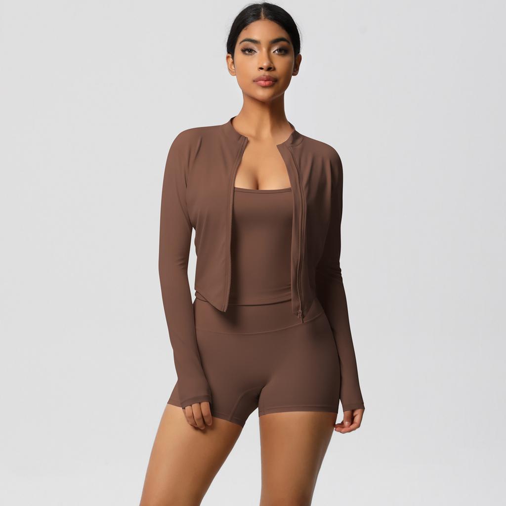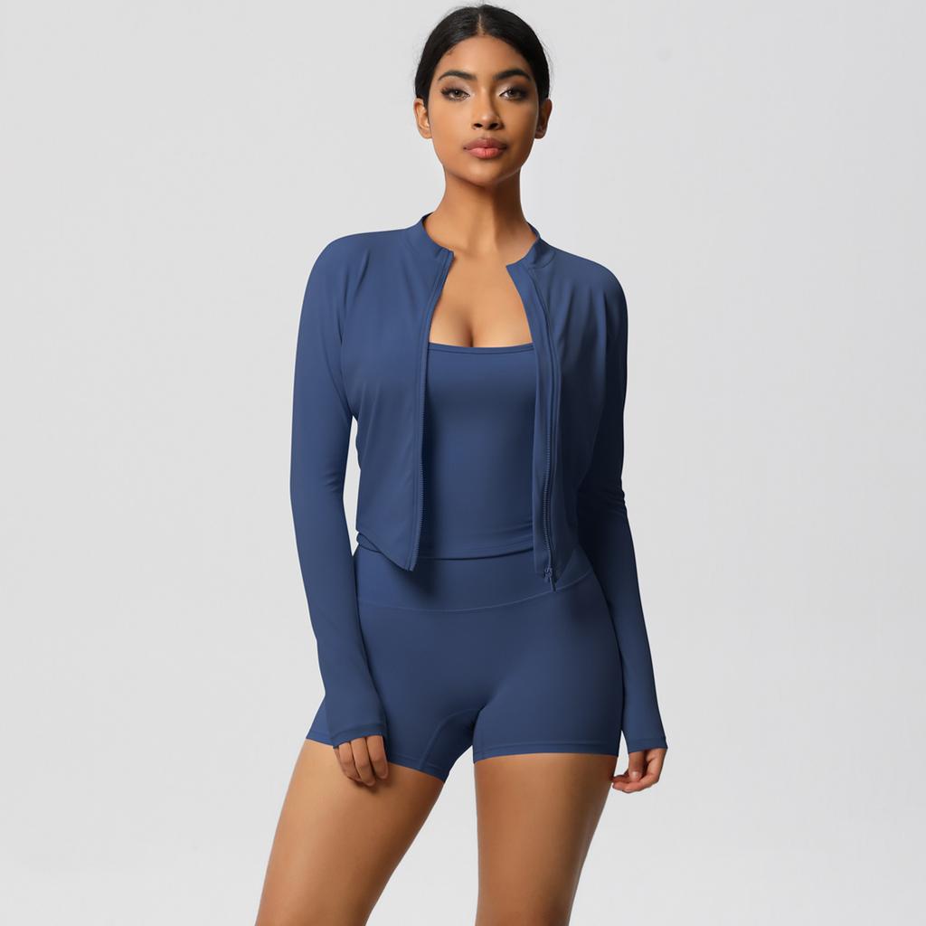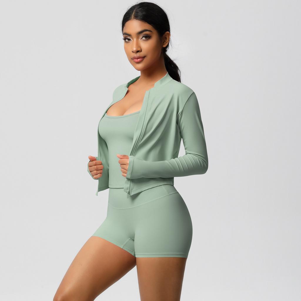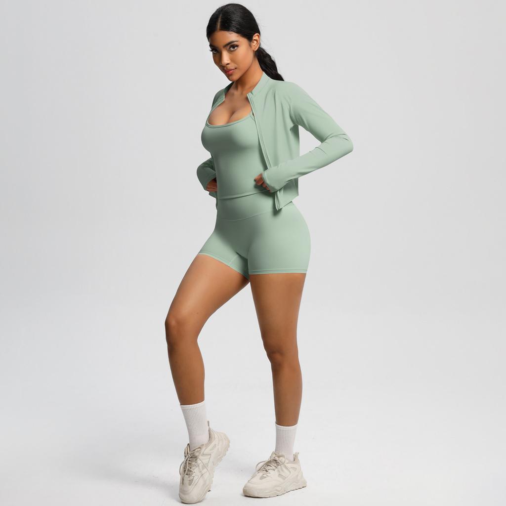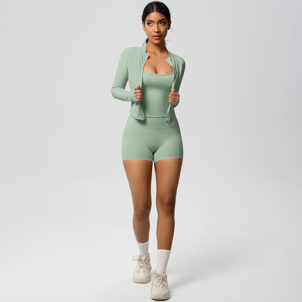 Костюм для йоги с высокой талией, облегающий, с пескоструйной обработкой, быстросохнущий фитнес-комплект с ощущением «обнажённости», комплект из трёх предметов для бега и активного отдыха на открытом воздухе для женщин