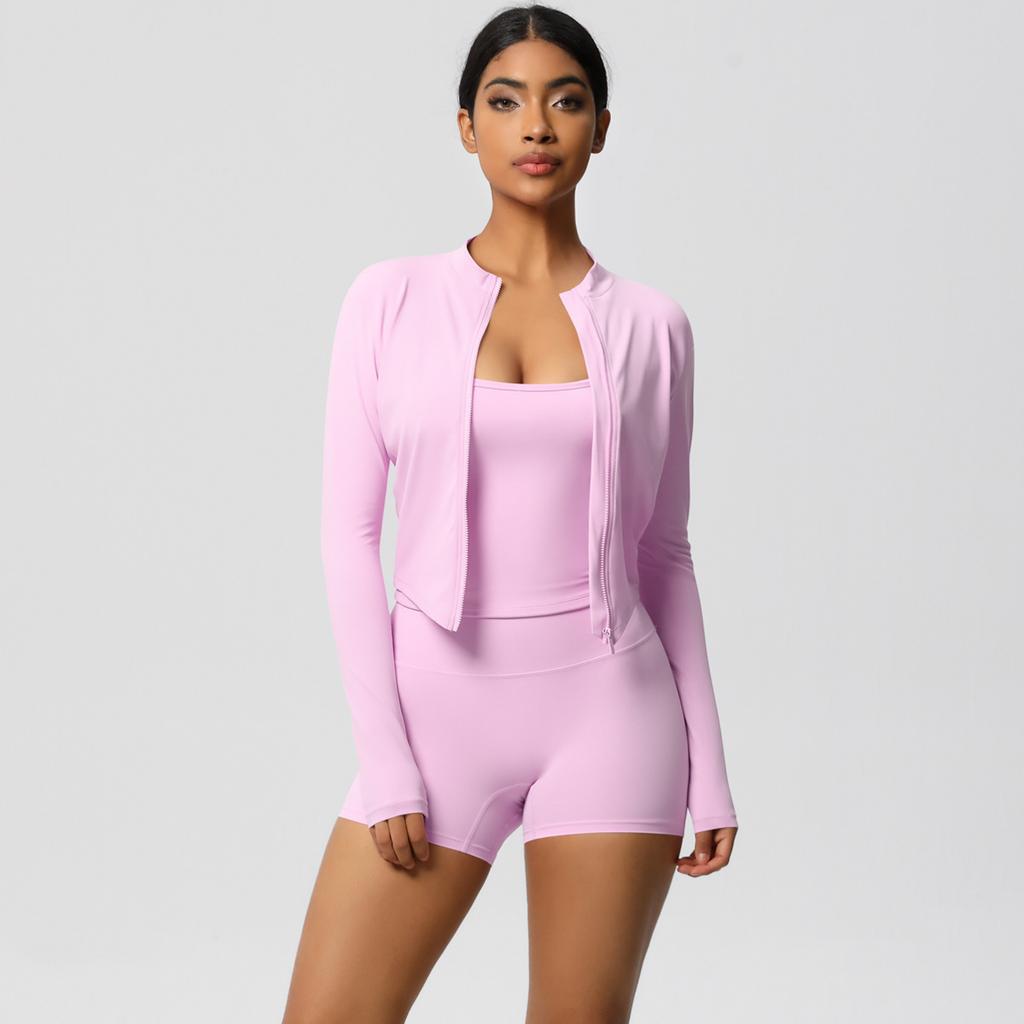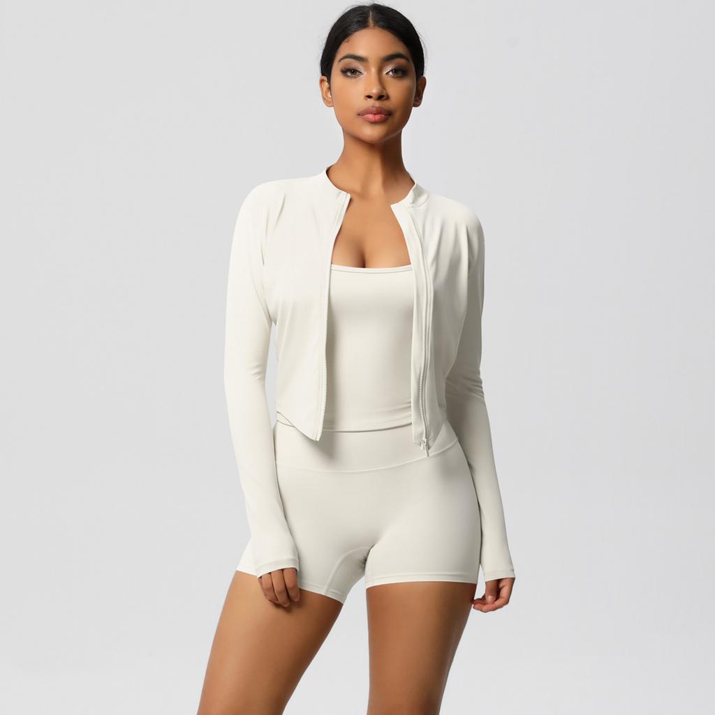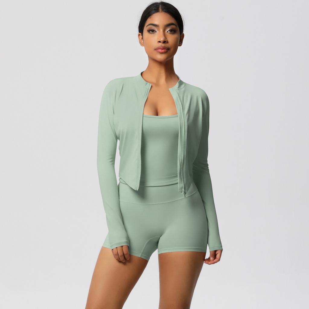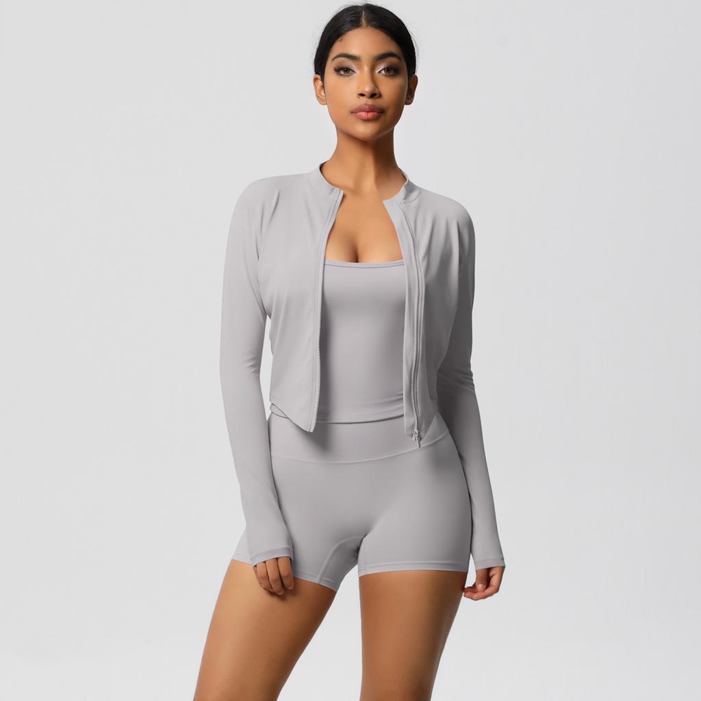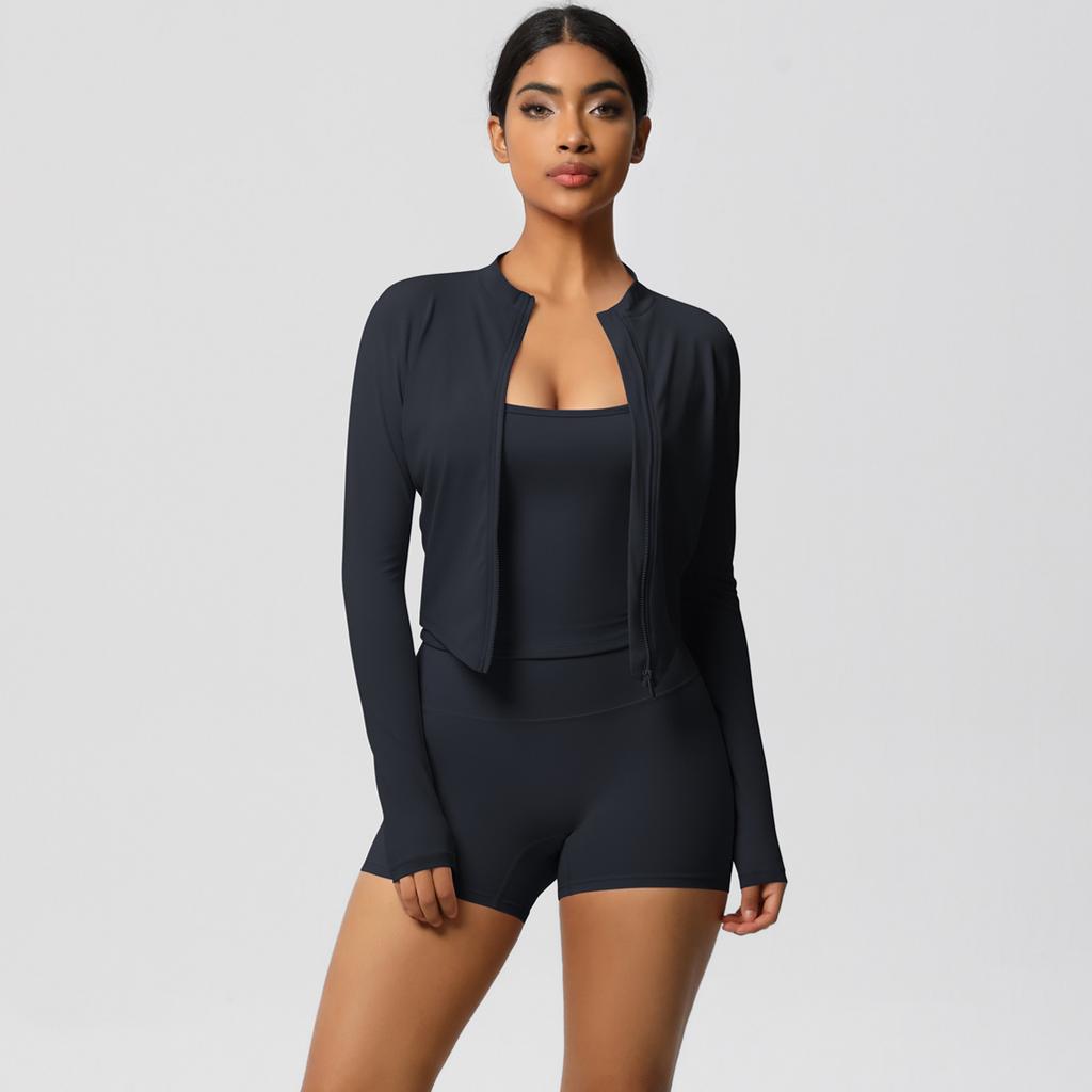 Костюм для йоги с высокой талией, облегающий, с пескоструйной обработкой, быстросохнущий фитнес-комплект с ощущением «обнажённости», комплект из трёх предметов для бега и активного отдыха на открытом воздухе для женщин