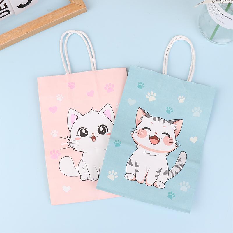 6 шт. красочные бумажные пакеты для конфет с принтом в виде лапы кота, подарочные пакеты с ручками для детских вечеринок на тему домашних животных, украшения для дня рождения