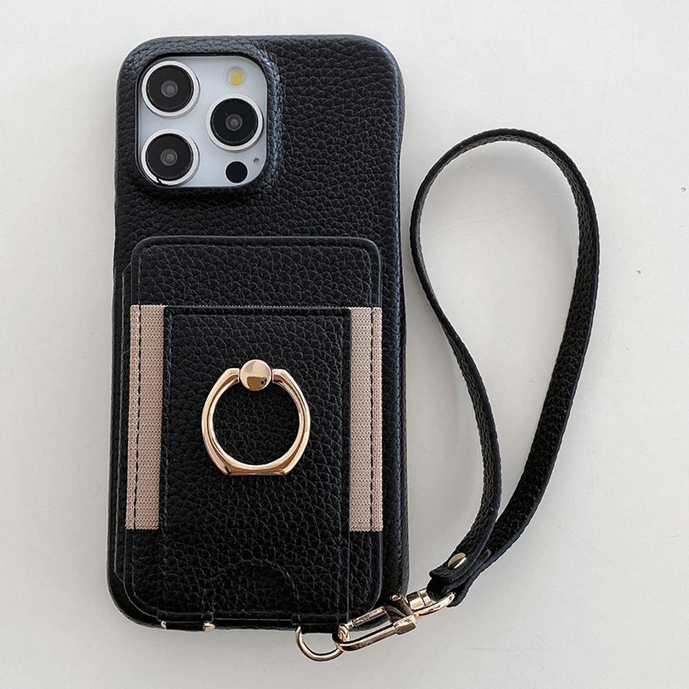 Чехол для iPhone 15 Pro с отделениями для карт, подставкой, задней крышкой из ПУ-кожи с держателем-кольцом, ремешком на запястье
