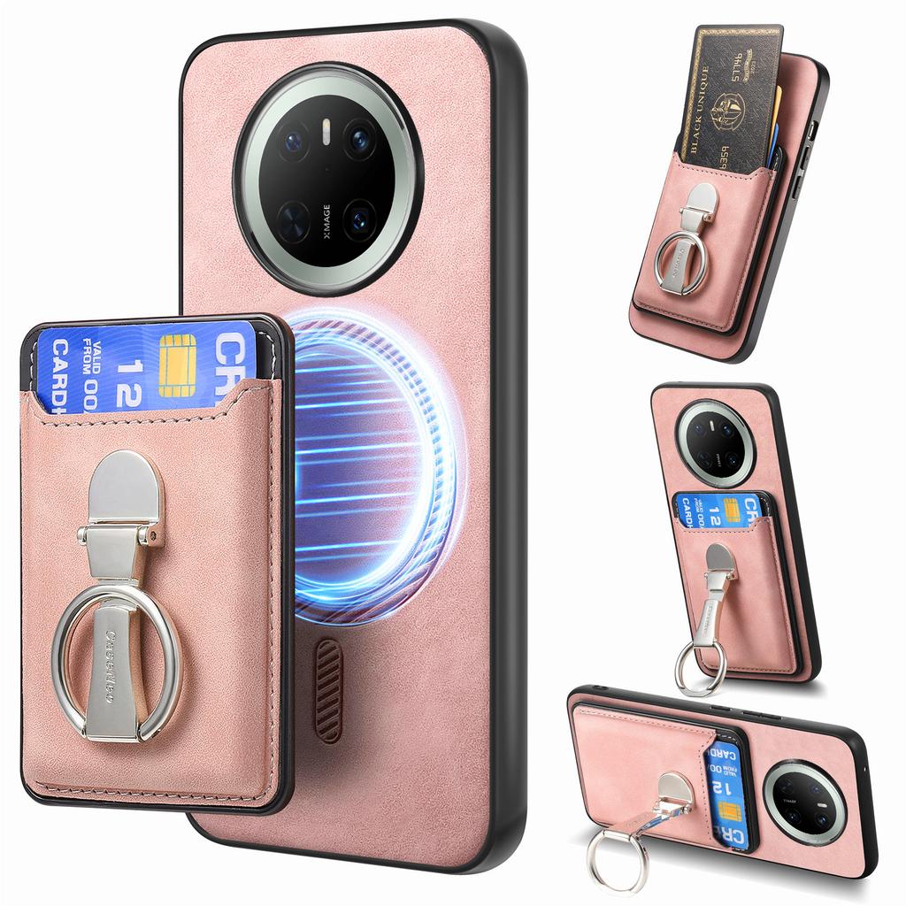 Для Huawei Mate 70 Чехол Совместимый с MagSafe Чехол с покрытием «кожа на ощупь» с отделением для карт и подставкой
