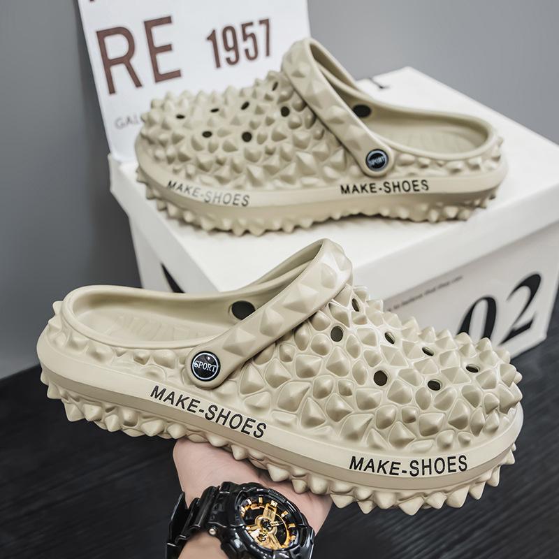 Летние новые дырчатые туфли сандалии дуриан мужские модные мужские пляжные туфли легкие дышащие сандалии один педаль мужские шлепанцы прилив