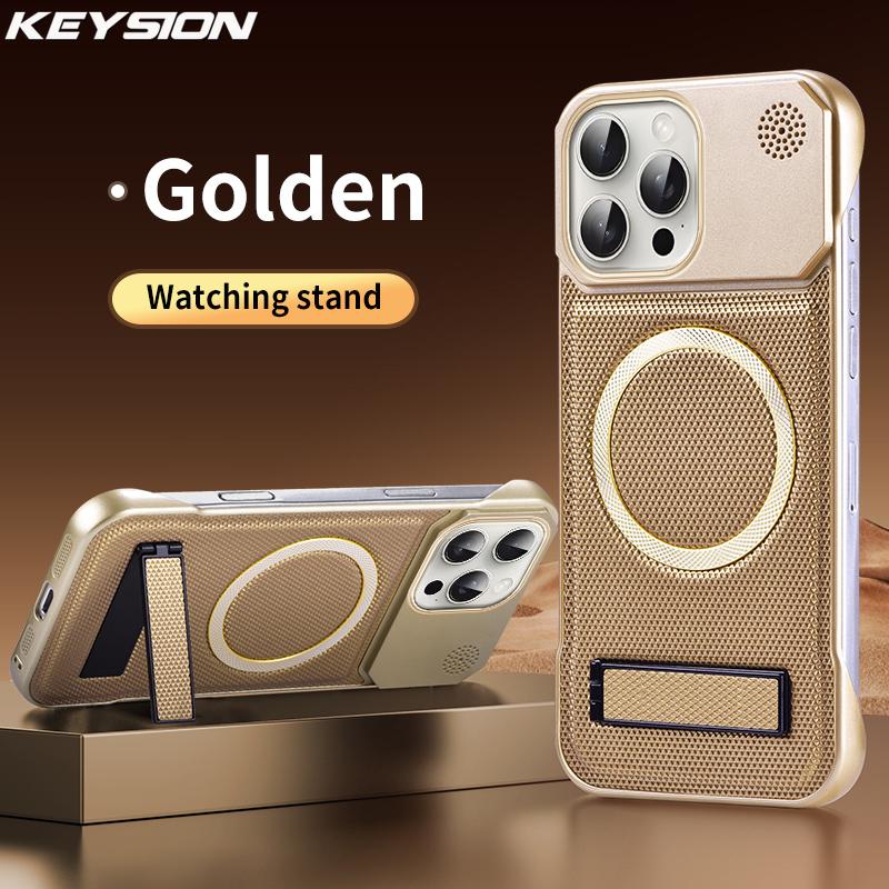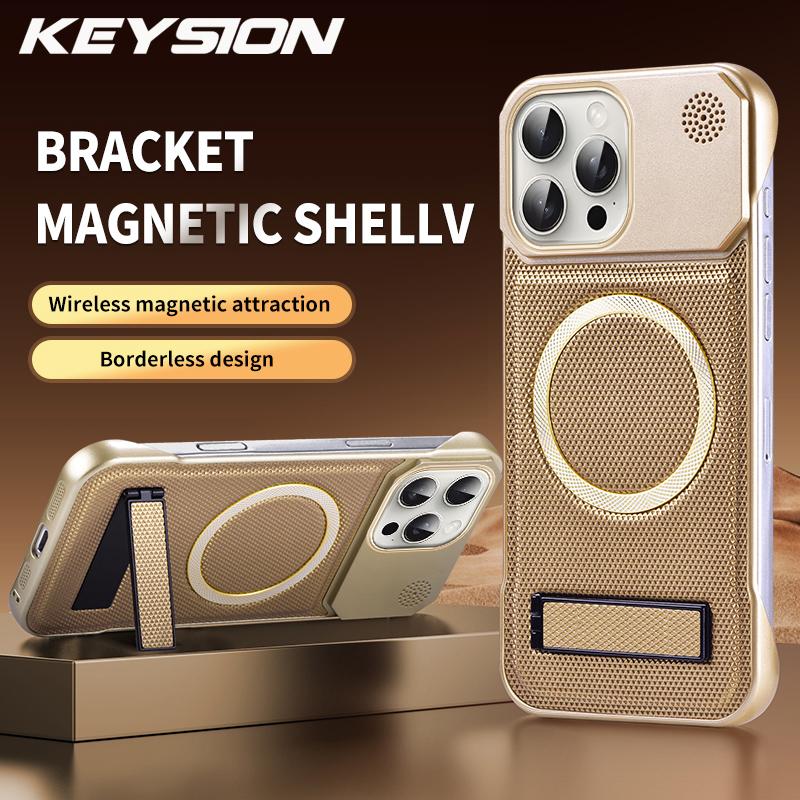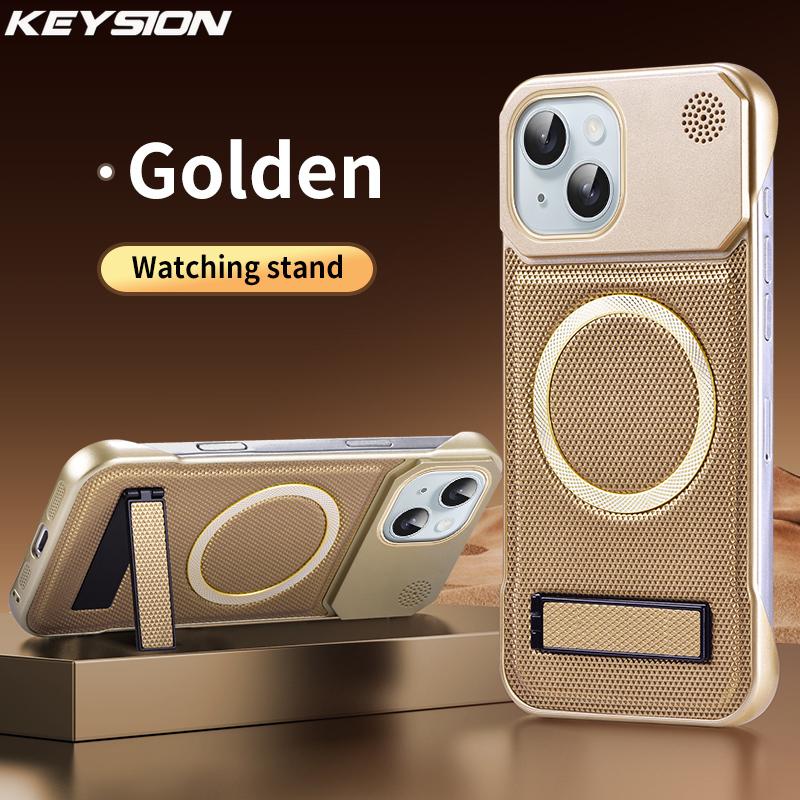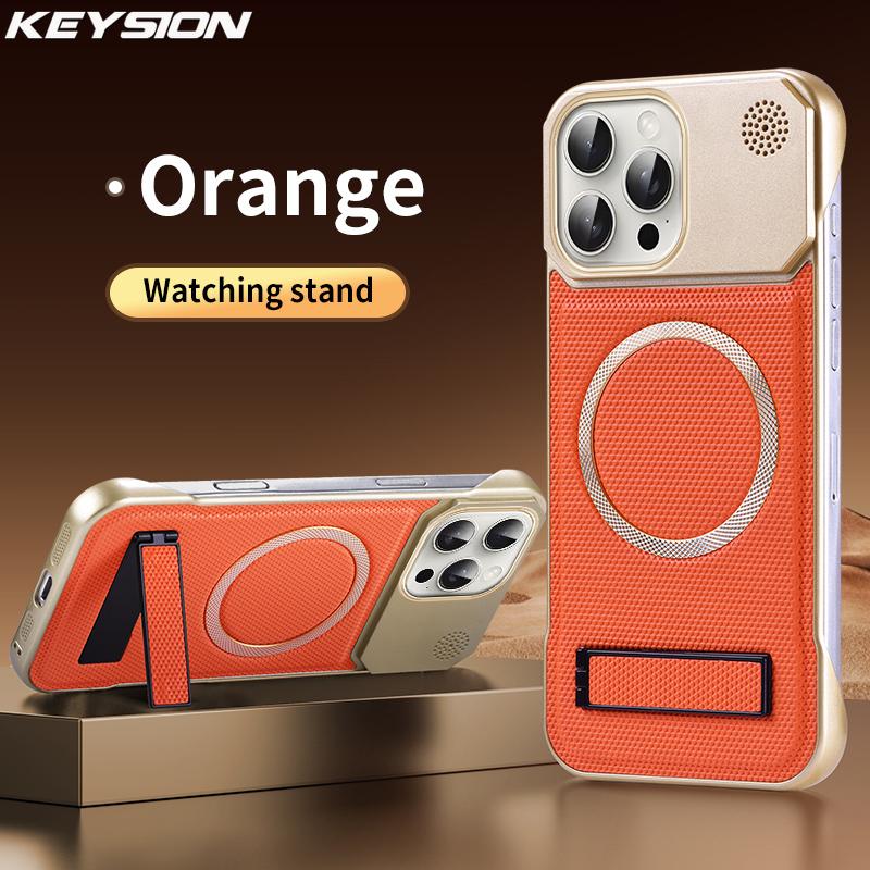 KEYSION Роскошный магнитный чехол для телефона из ПУ кожи для ароматерапии для iPhone 13 14 15 Pro Max 14 Plus с подставкой, безрамочная задняя крышка