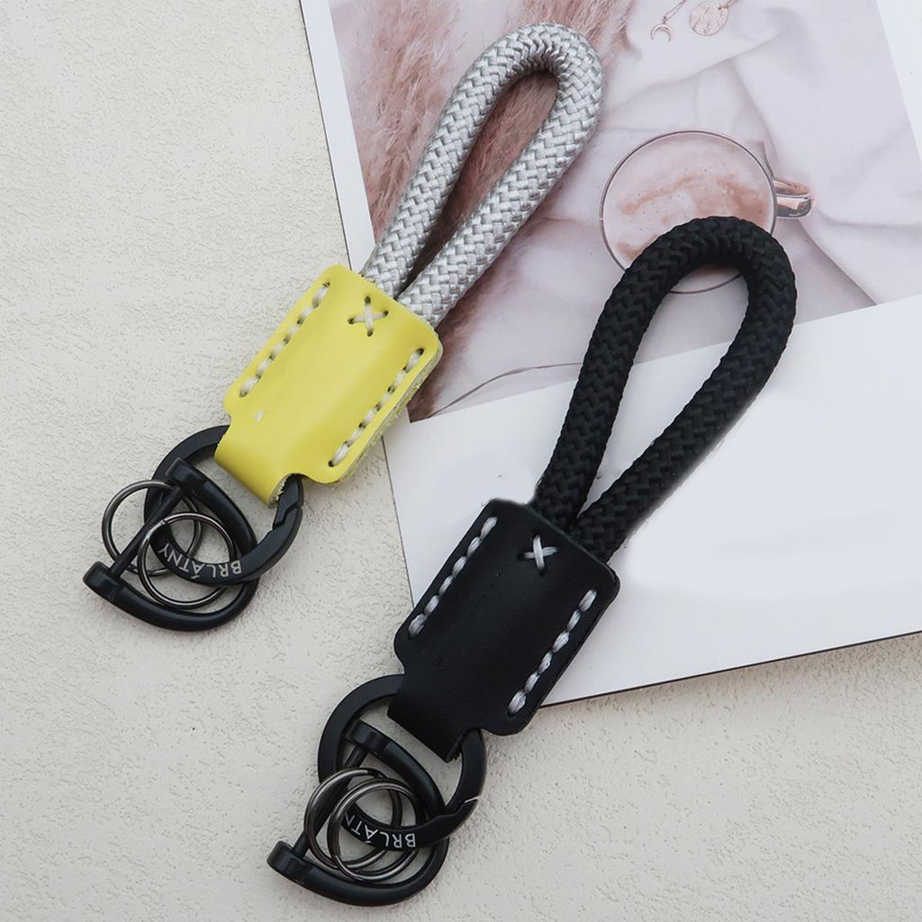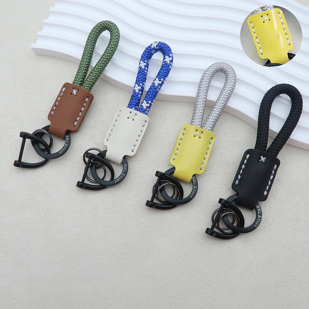 Плетеный кожаный держатель для ключей Стильный брелок из коровьей кожи и нейлонового шнура Ручной шнурок Подвеска для школьной сумки для повседневного использования