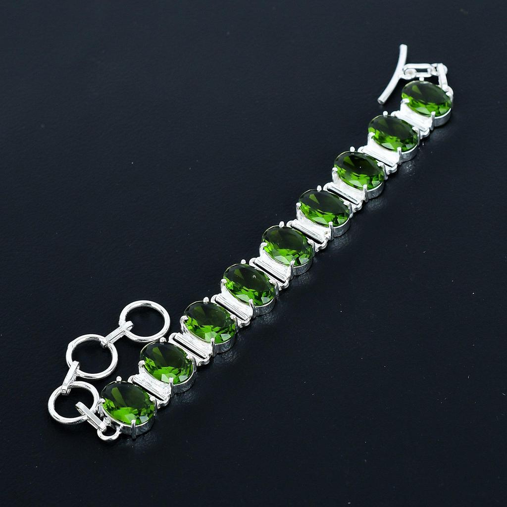 Красивый браслет с перидотом, браслет из стерлингового серебра 925 пробы, браслет с регулируемой цепочкой, браслет ручной работы в стиле бохо, украшения с перидотом, подарки для любви