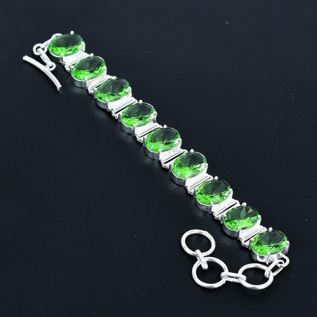 Браслет из зеленого аметиста Браслет из стерлингового серебра 925 пробы Браслет с регулируемой цепочкой Браслет ручной работы Браслет в стиле бохо Украшения из зеленого аметиста Подарки на помолвку