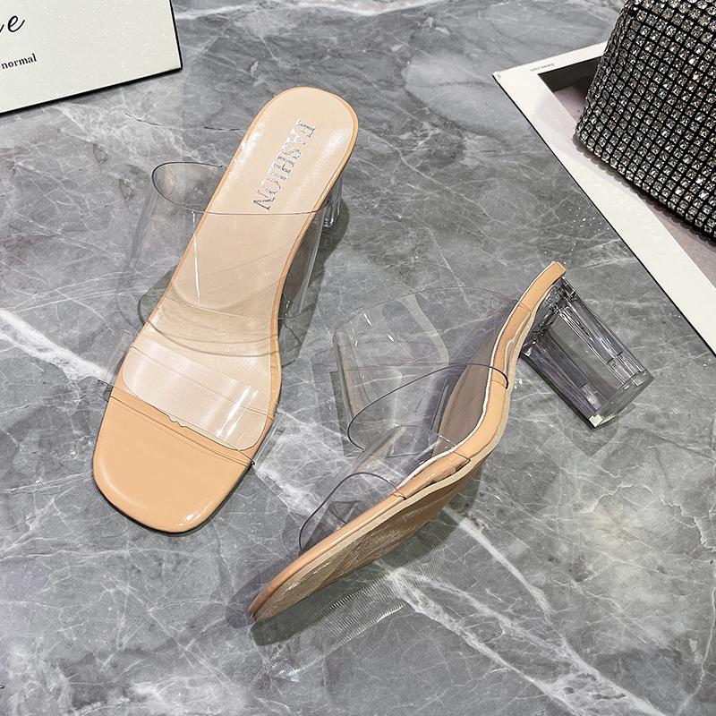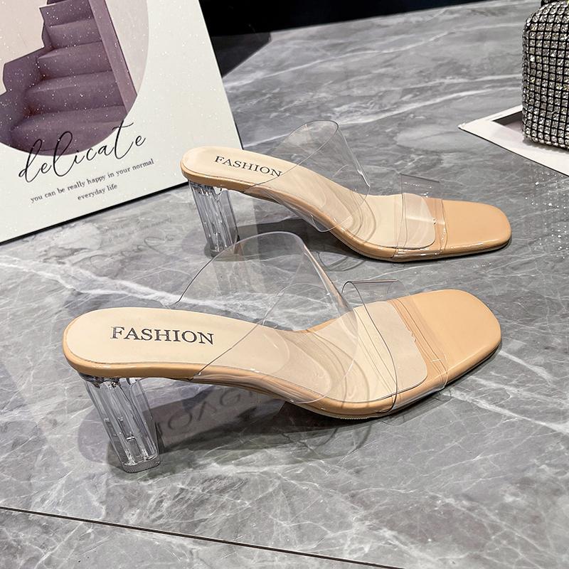 Летние женские туфли-лодочки, сандалии, прозрачные тапочки из ПВХ, женские прозрачные тапочки на высоком каблуке с открытым носком, туфли из плексигласа, прозрачные сандалии на каблуке