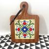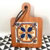 Японская кухонная подставка из массива дерева с цветочной плиткой - Изолированная подставка под горячее, Ретро салфетка, Подставка под кастрюлю, Костер