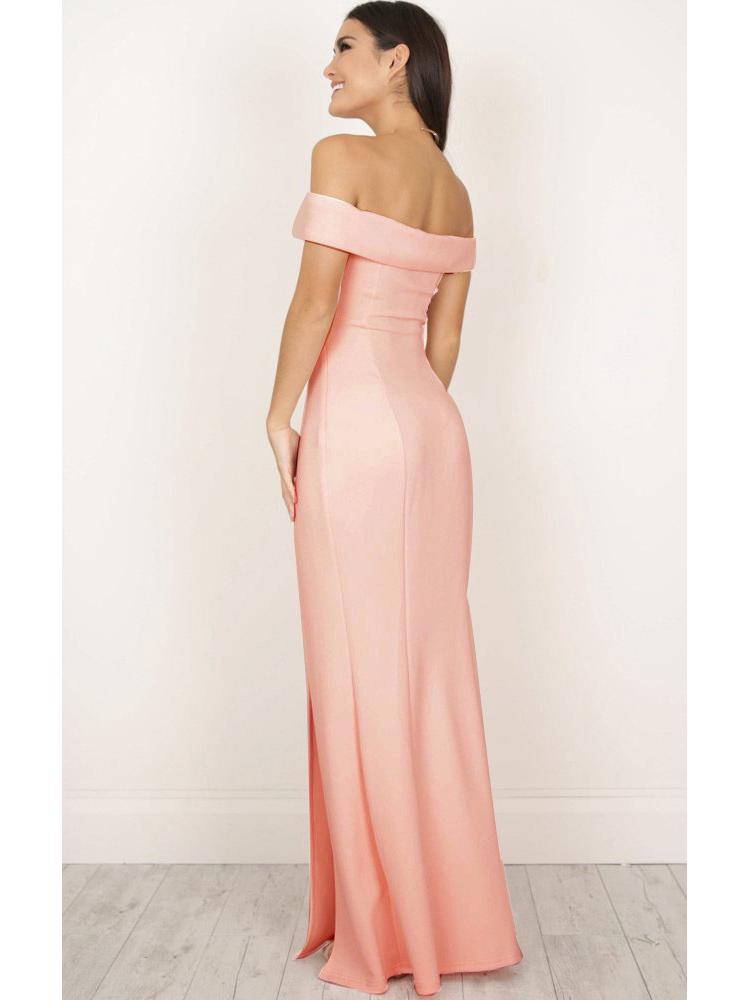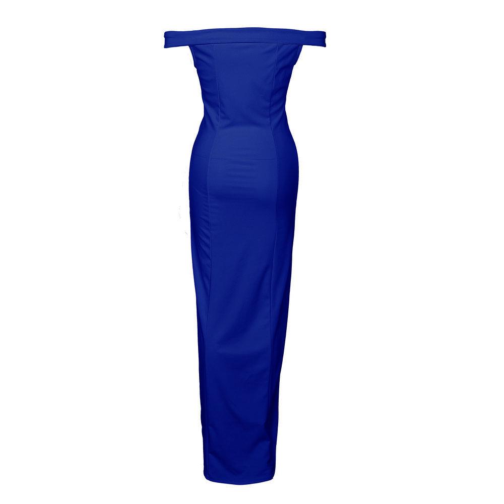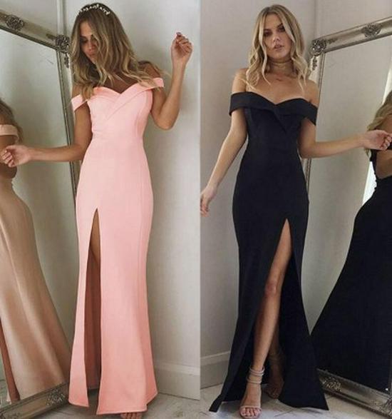 Осенний Горячий Стиль Простое Бандо Платье в Пол с Разрезом